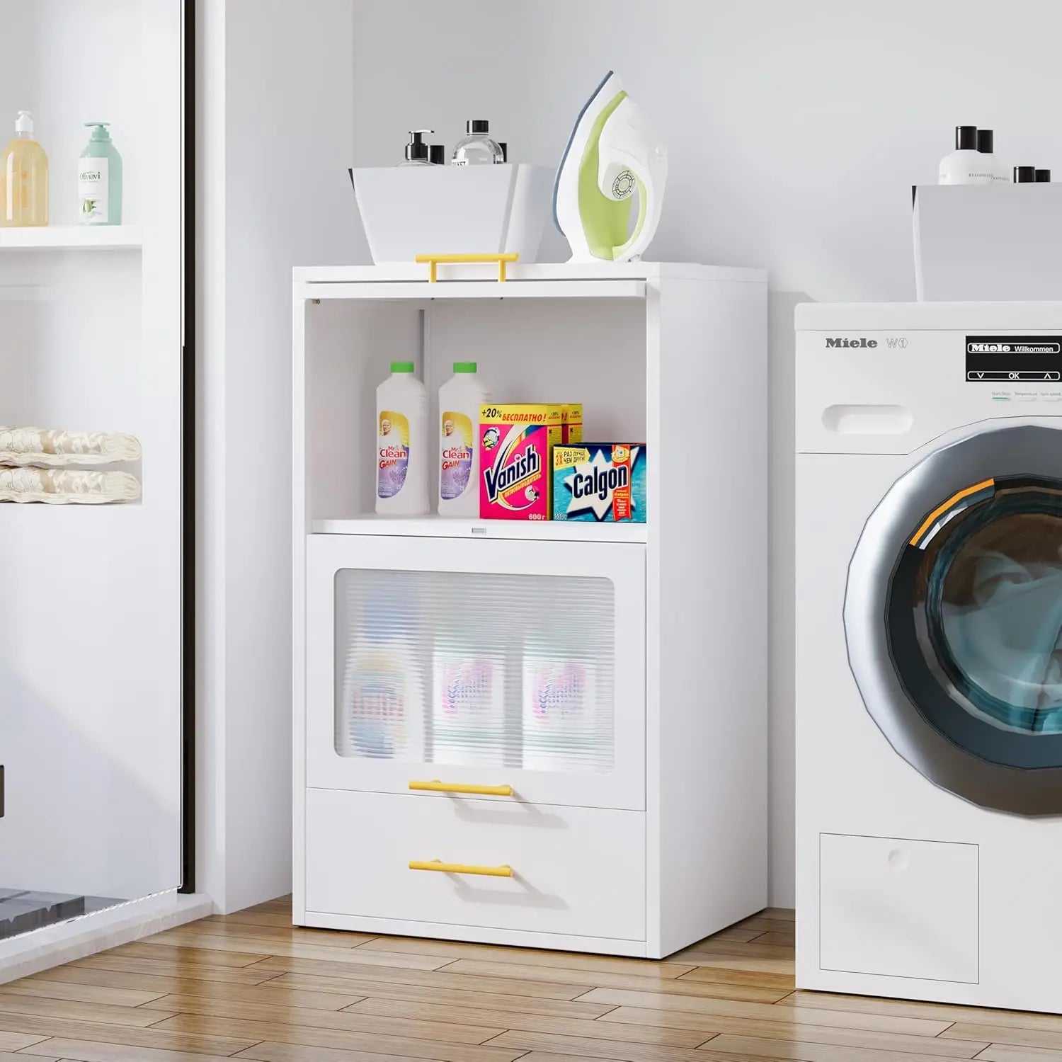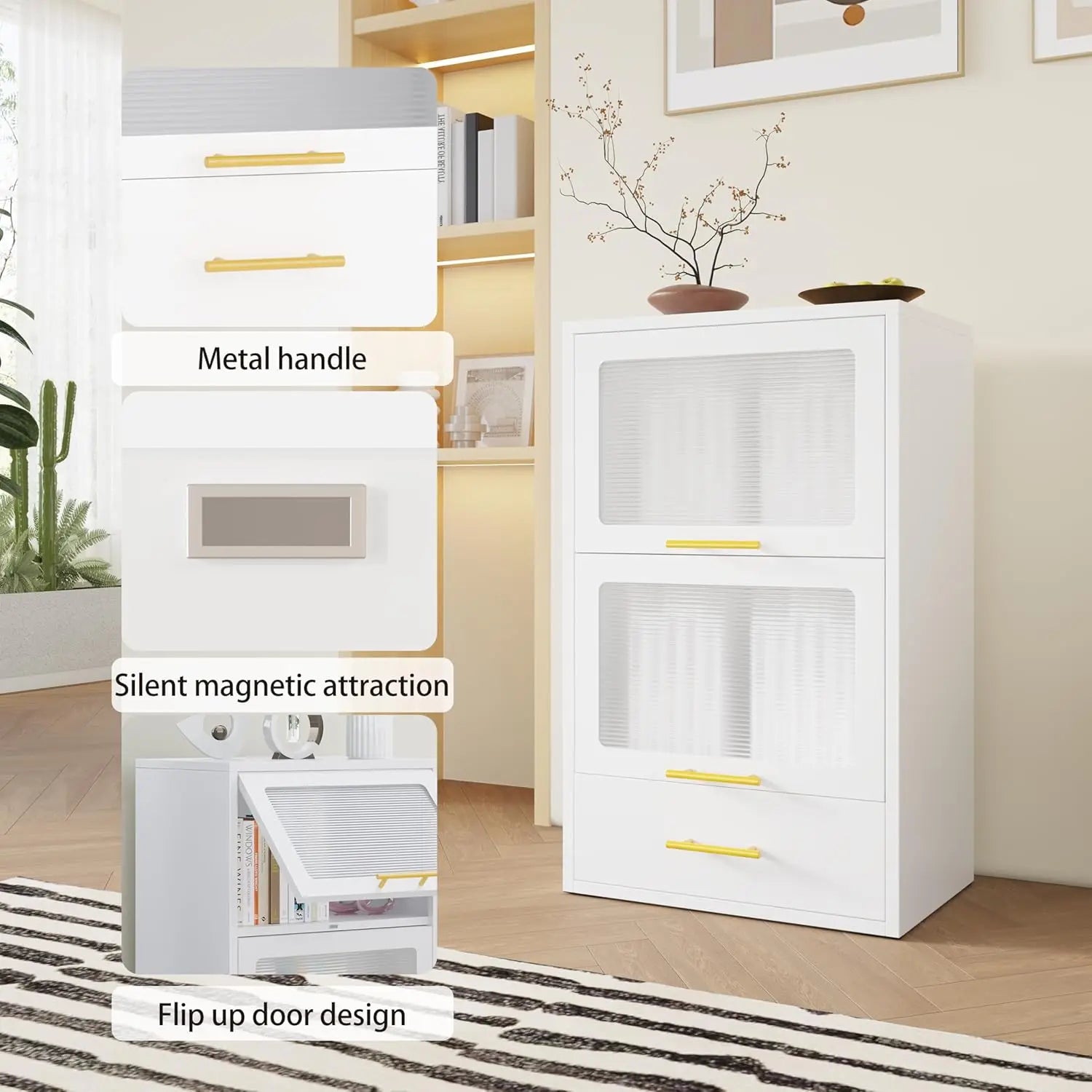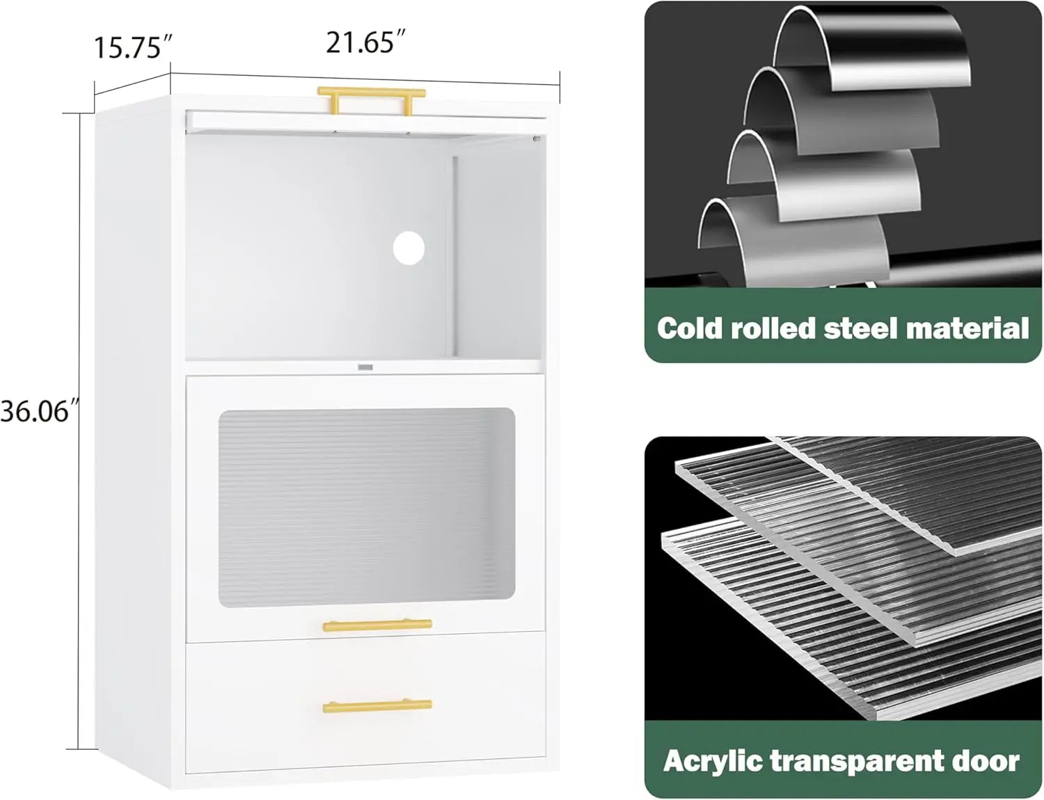 3. 【Perfect Design】: This End Table storage cabinet is equipped with Acrylic transparent glass door to Adding a touch of elegant atmosphere to your space. This metal NightStand storage cabinet with Wide and deep drawers And two flip up doors to meet your various storage needs, providing you with maximum adaptability.