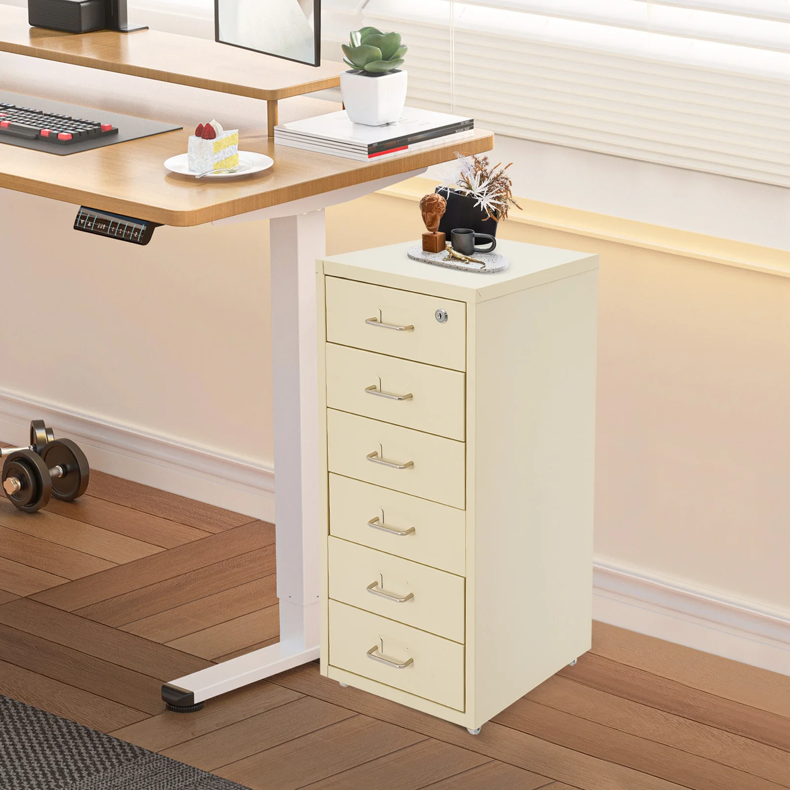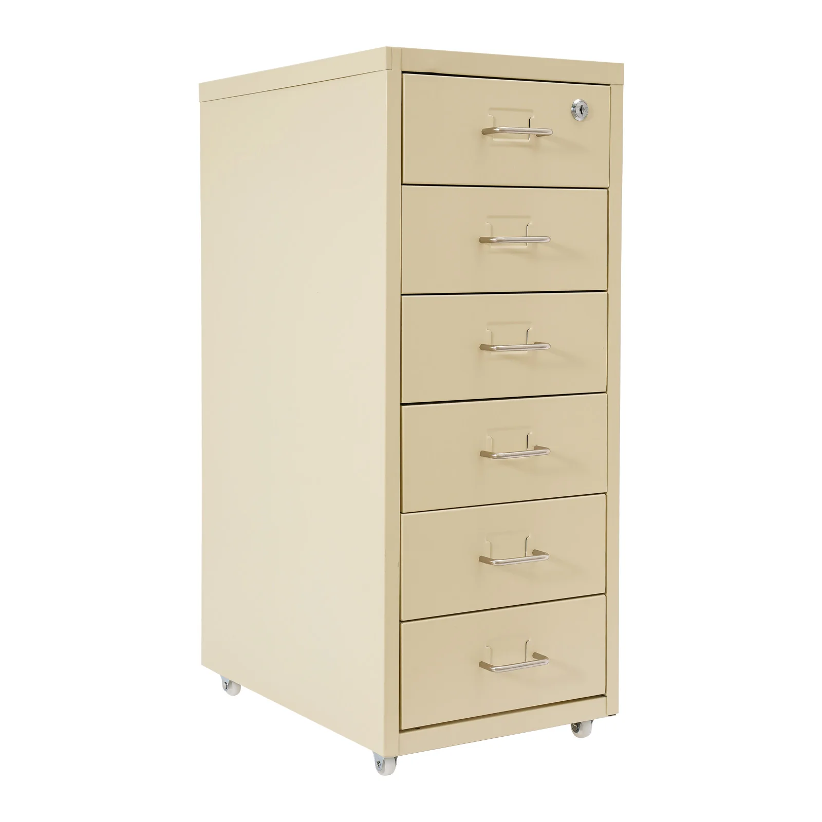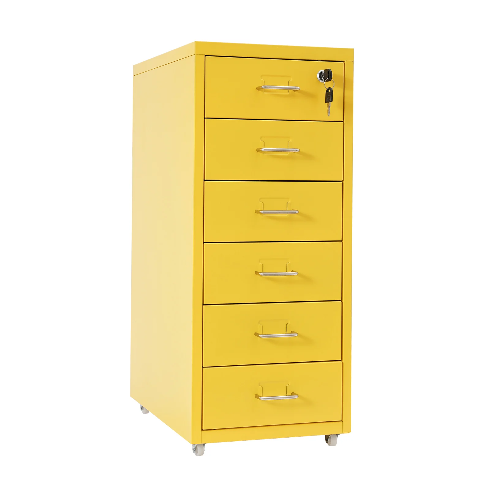Lockable Rolling Metal File Cabinet| 6-Drawer Home Office Document Storage Container with Wheels| Off-white/Green/Yellow