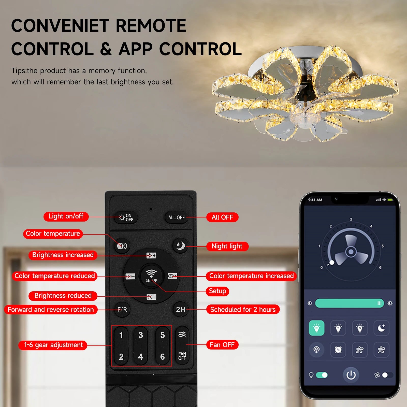 Luxury Crystal Chandelier Modern Ceiling Fan Light