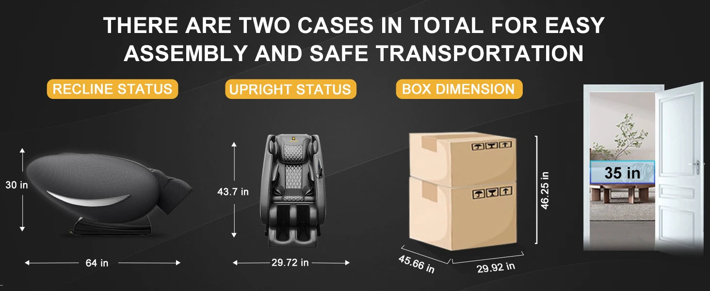 The full-body massage chair comes with two packaging boxes, boasting a clear and simple internal structure that allows for quick assembly. This massage chair is not only an ideal gift for parents, elders, and friends but also promises to deliver a deeply soothing and enjoyable experience for them.