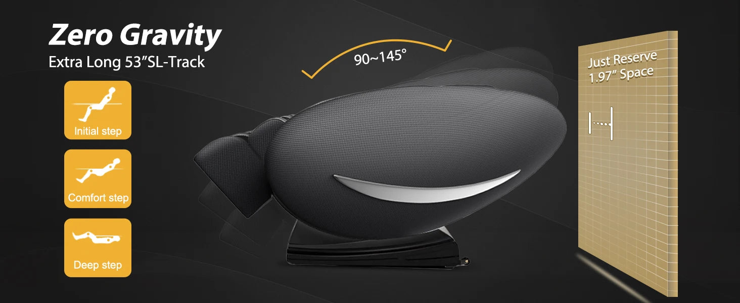 Experience weightlessness with our massage chair's Zero Gravity feature. Simply press the "Zero Gravity" button, and your body reclines fully, elevating your feet above the heart for a lighter cardiac load and an enhanced overall experience.