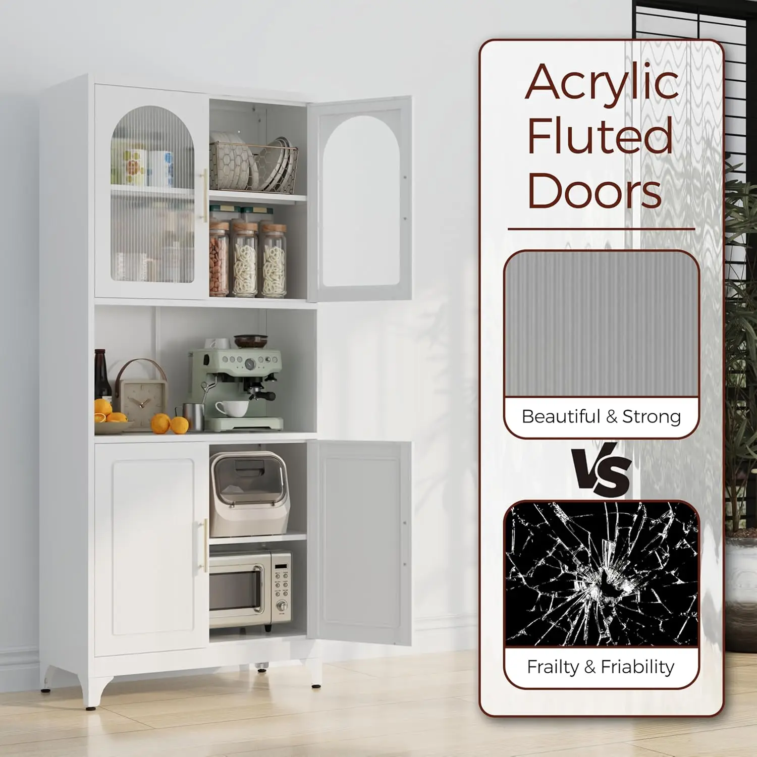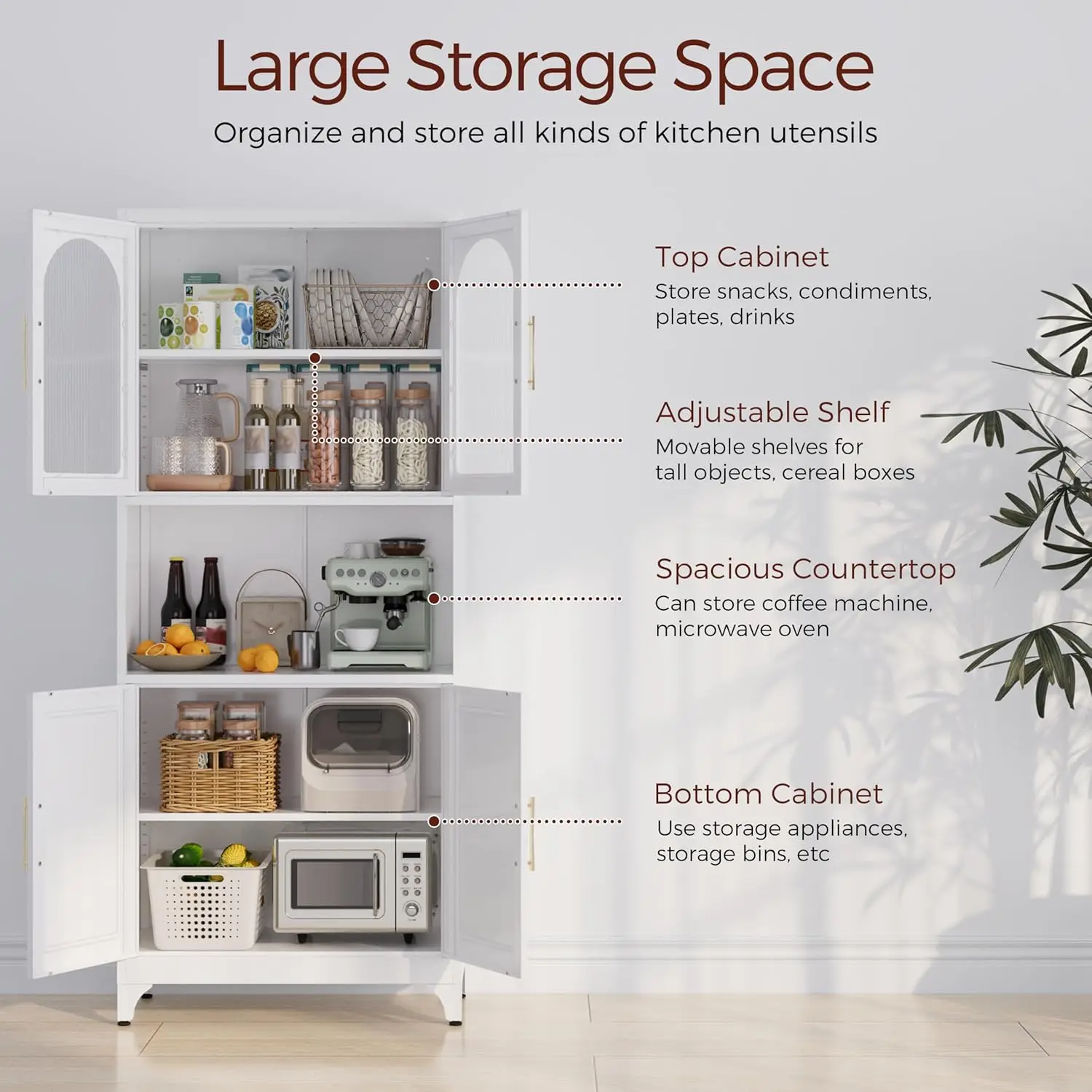 - 【Easy Assemble】Our pantry cabinets come with clear and complete parts and detailed installation instructions. One person can also assemble it quickly. Upgrade your kitchen storage with metal pantry cabinet