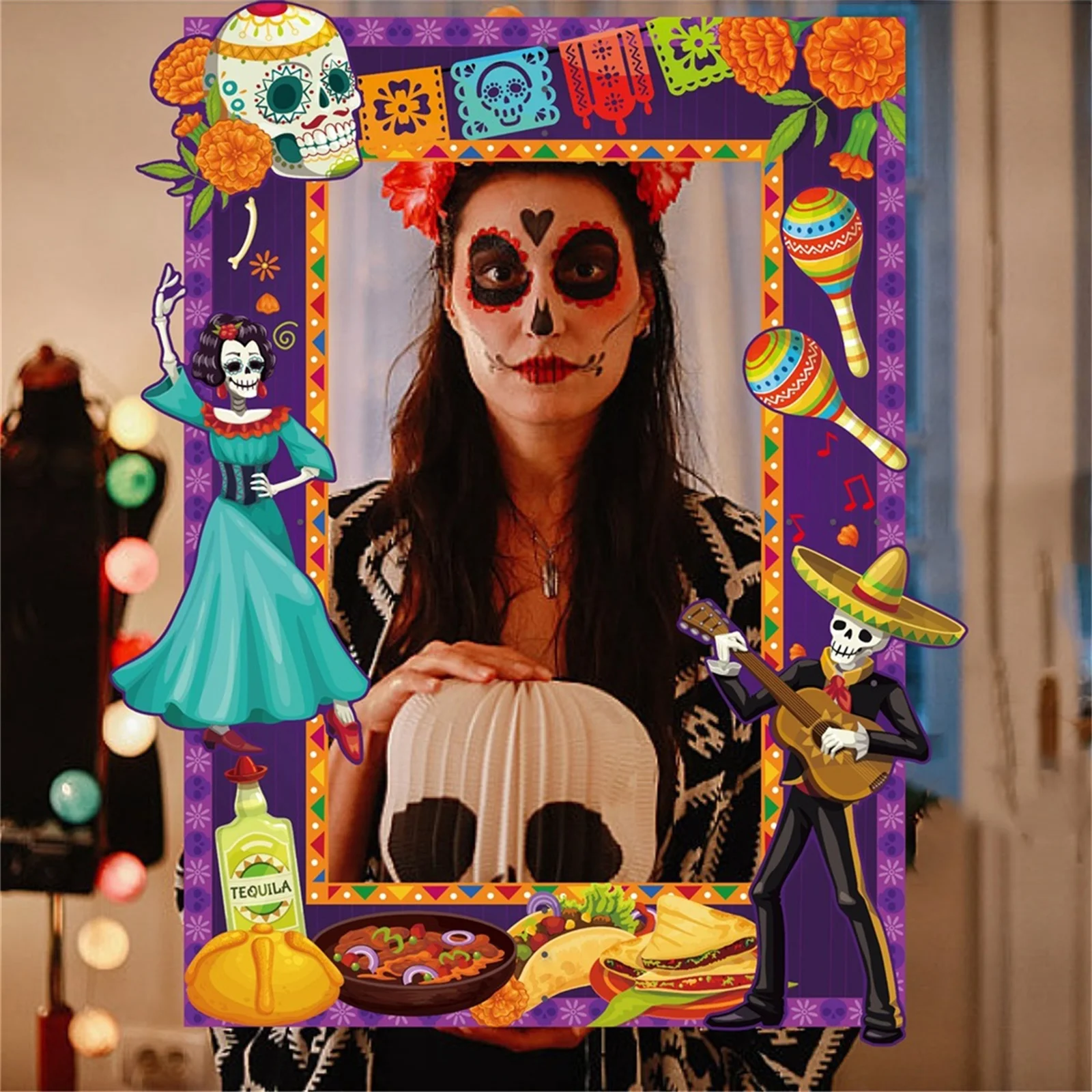Day of The Dead DIY Photo Frames Set Mexican Sugar Skull Stickers Picture Frames Wall Hanging Decor for Home Party Tabletop