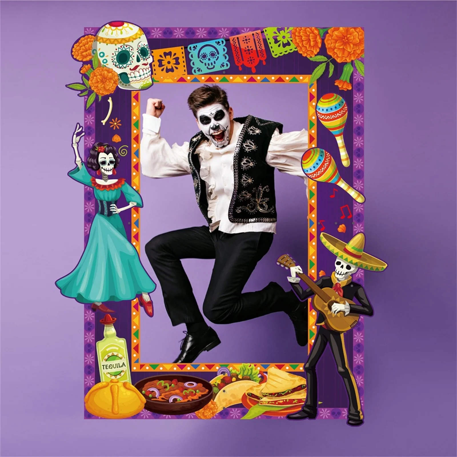 Mexican Day of The Dead DIY Photo Booth Kit with Sugar Skull Stickers and Picture Frame
