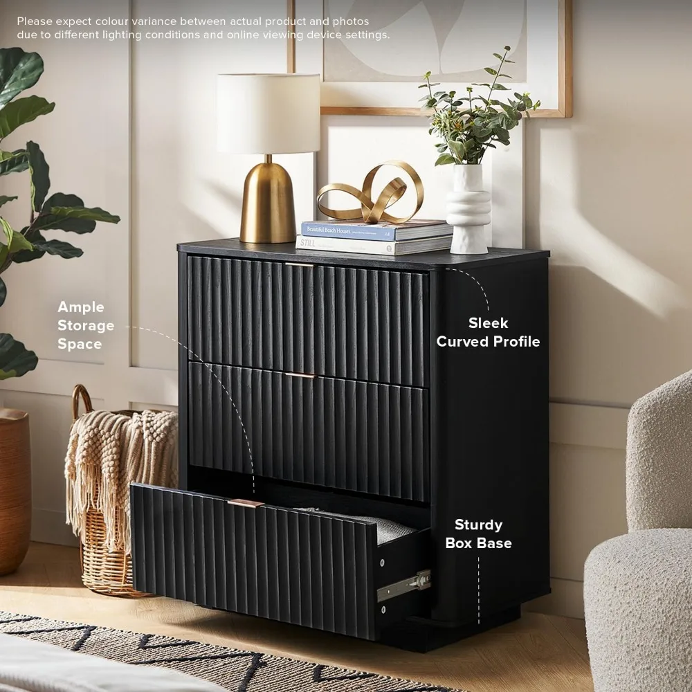 - Design: Fabricated through a special technology, the fluted panel design is unique and elegant. The rounded corners also soften the look of the streamlined frame and provide an environment safe for little ones. Complete with aluminum handles, it provides the drawers with durability to last for a long time