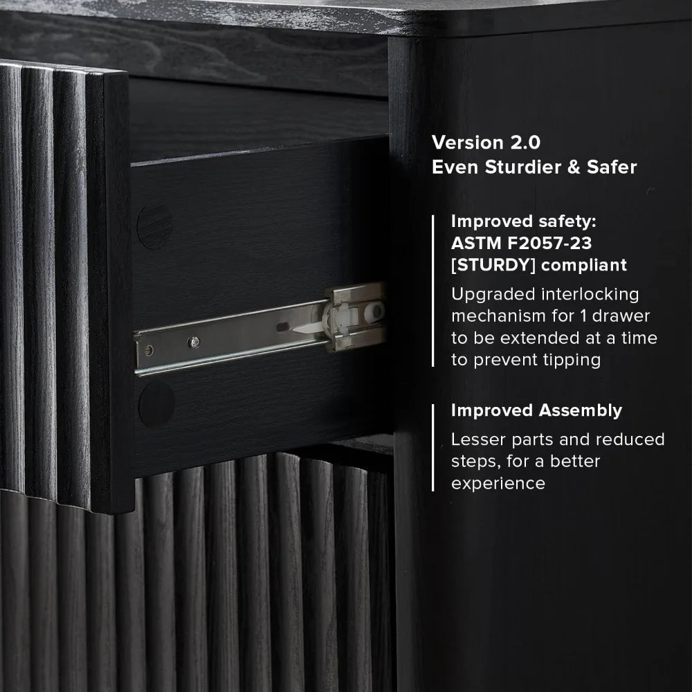 - Reliability: Your safety is our priority. The Brooklyn Dresser is designed with a heavy base for extra stability and put through stringent quality checks to be able to store up to 25 lbs for each drawer. The new & improved version 2.0 is ASTM F2057-23 [STURDY] compliant, redesigned with interlocking mechanism for one drawer to be extended at a time to prevent tipping. An anti-tipping kit is also included for added safety. It's also reengineered with lesser parts and steps, for a better assembly experience.