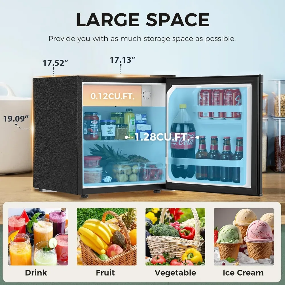 - Size and Capacity-Dimension: 19.09H*17.52D*17.13W and 1.7 cu.ft capacity. Sufficient space to store snacks, fruits, vegetables and soda.