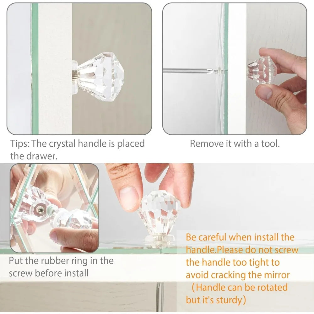 - Easy to Assemble: We have pre-installed the drawers, but you need to remove the crystal handles from inside the drawers and install them. Finally, attach the cabinet legs. The entire process takes no more than 15 minutes to complete