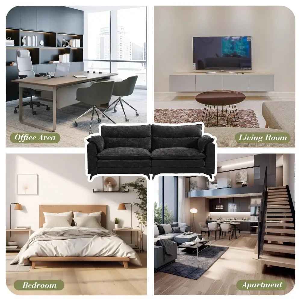 Pet-Friendly Chenille Fabric: Upholstered in fluffy chenille fabric, the loveseat offers a luxuriously soft while ensuring breathable. It's non-pilling and won't stain, this sofa's high-density weave resists even pet scratches