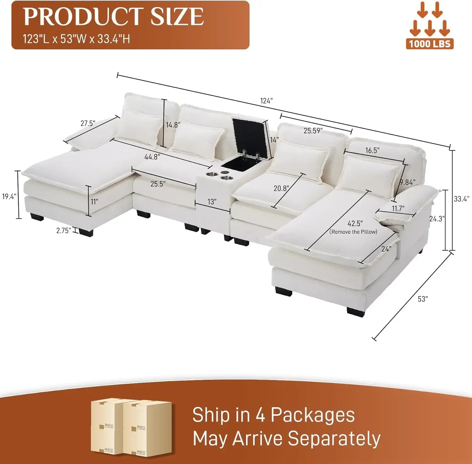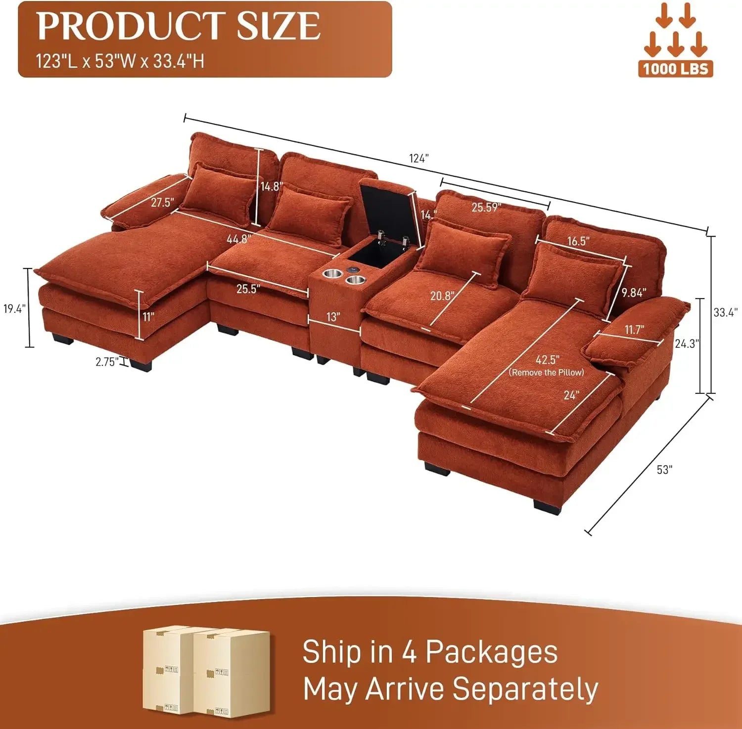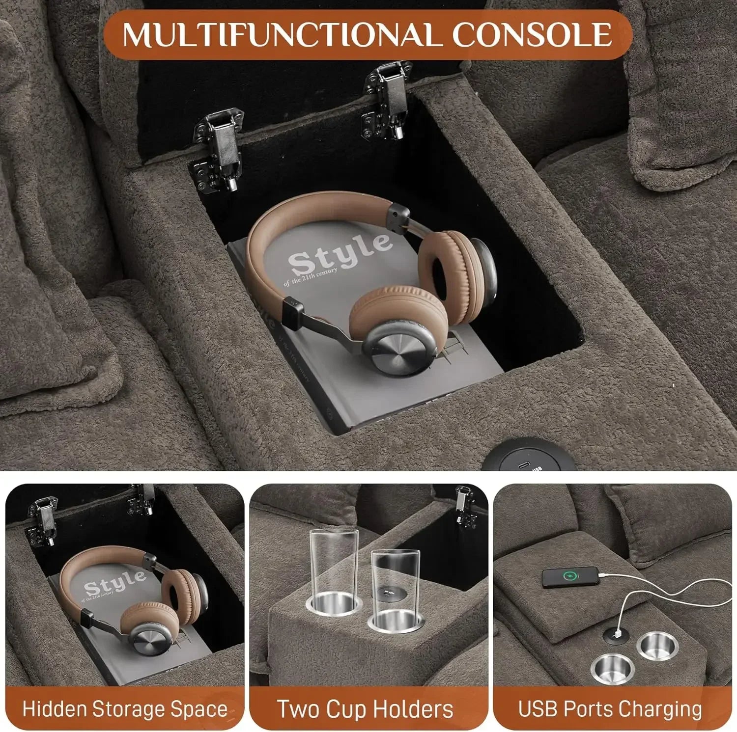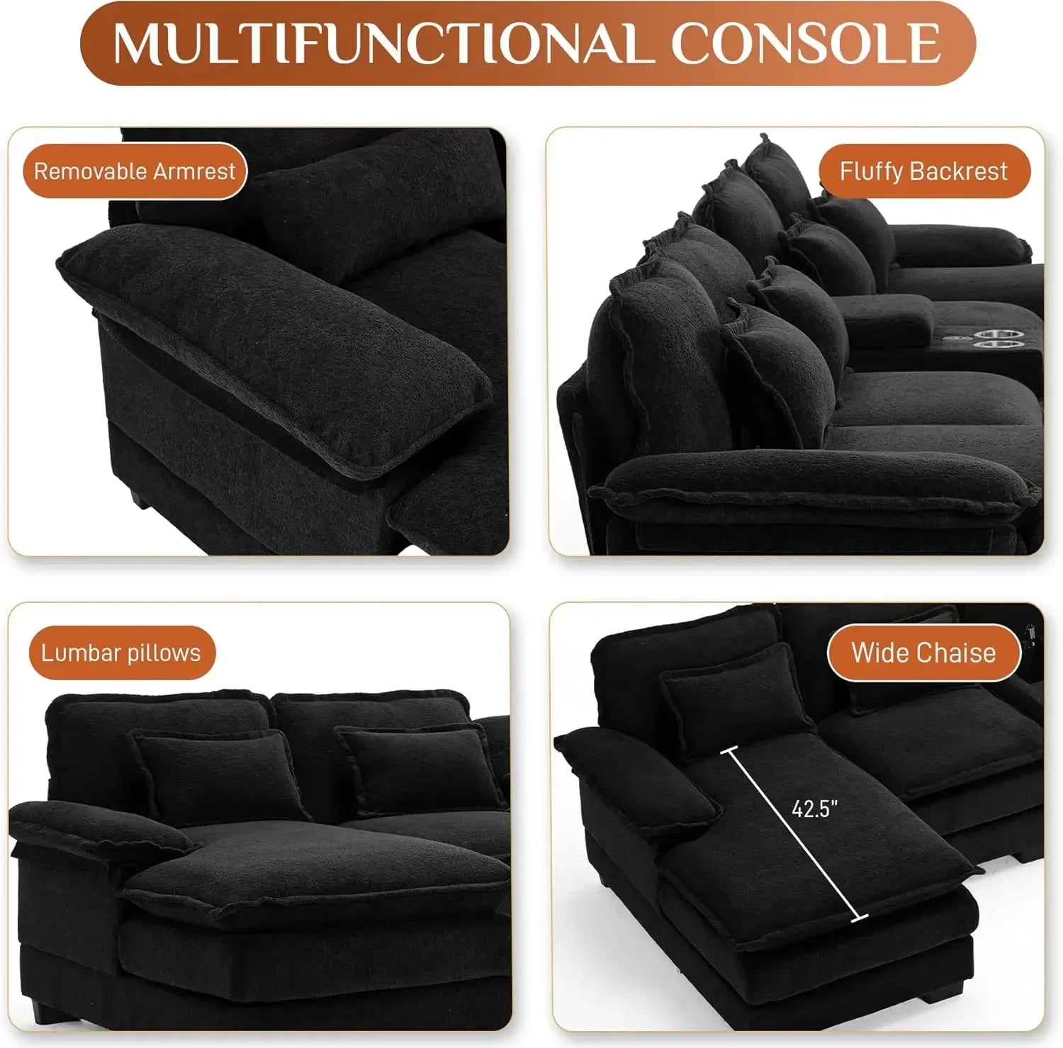 - Upgraded Design: This cloud couches for living room offers a built-in storage console, cup holders and USB ports, allowing you to store remotes, charge phones, and keep drinks within reach-ensuring both convenience and comfort while you relax