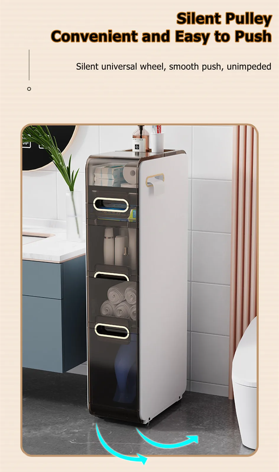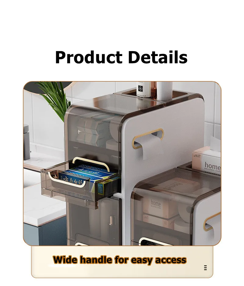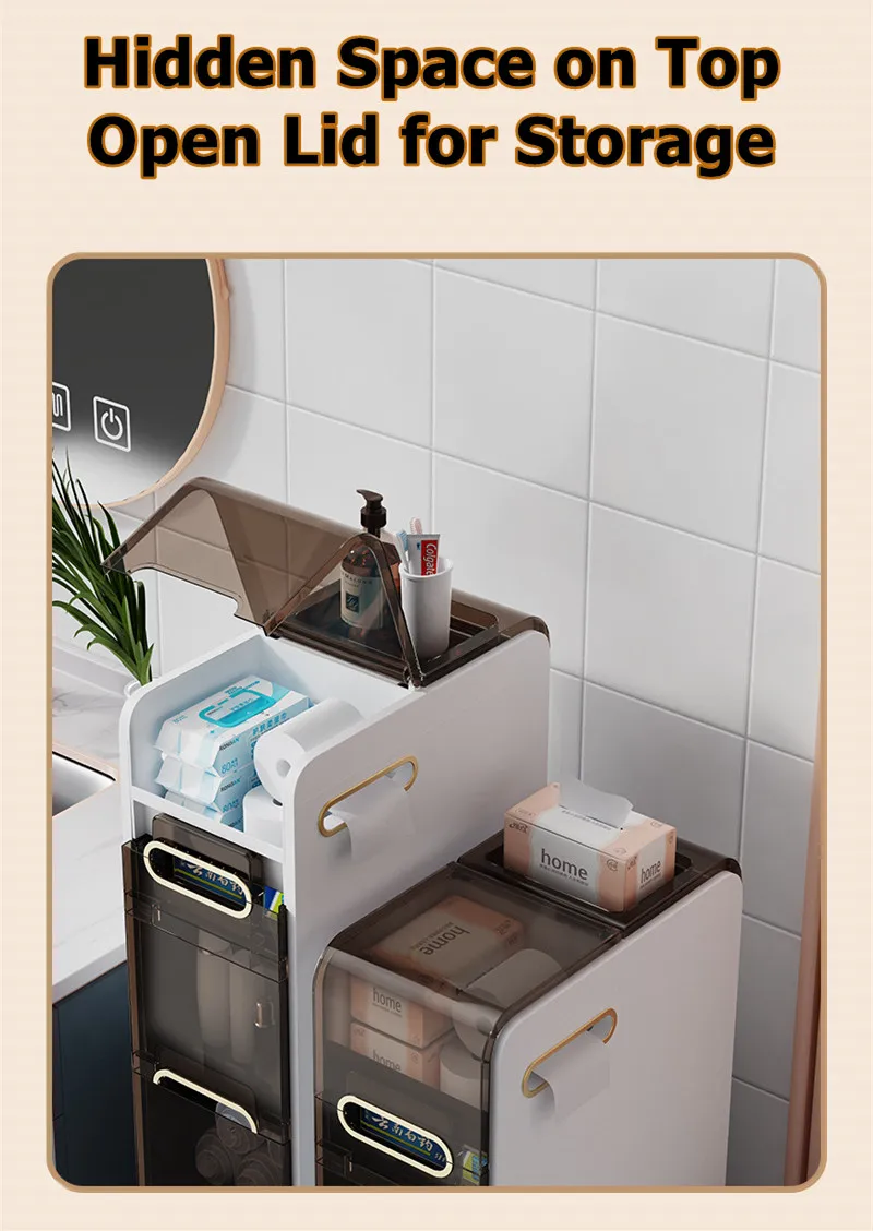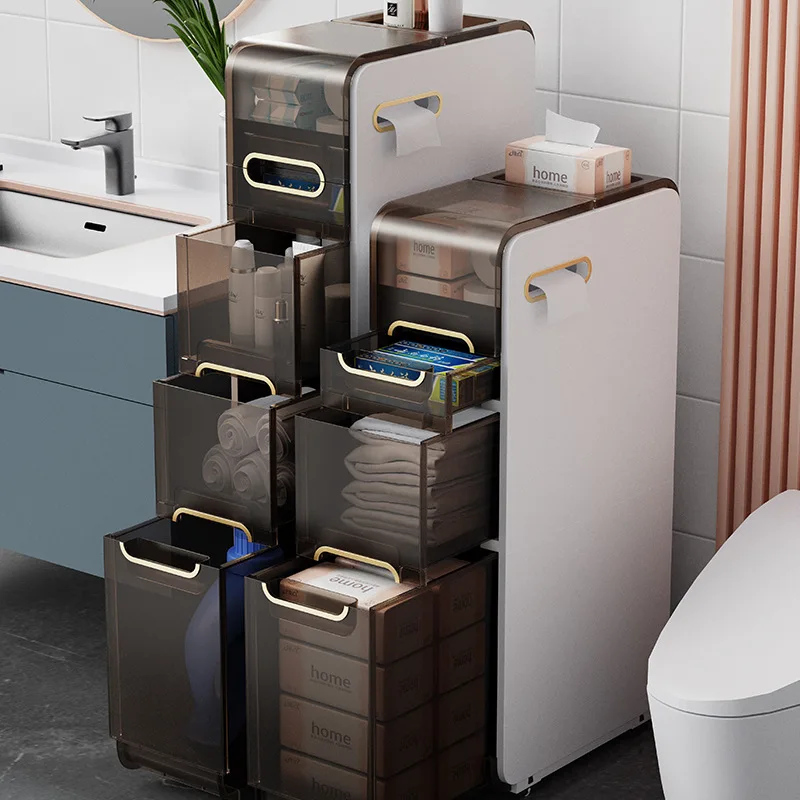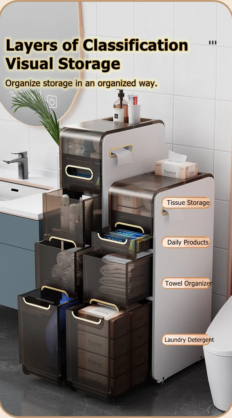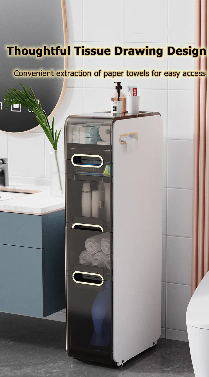 Modern Bathroom Floor Cabinet,PP Toilet Sideboard,Removable Narrow Bathroom Organizer with 2/3/4 Drawers
