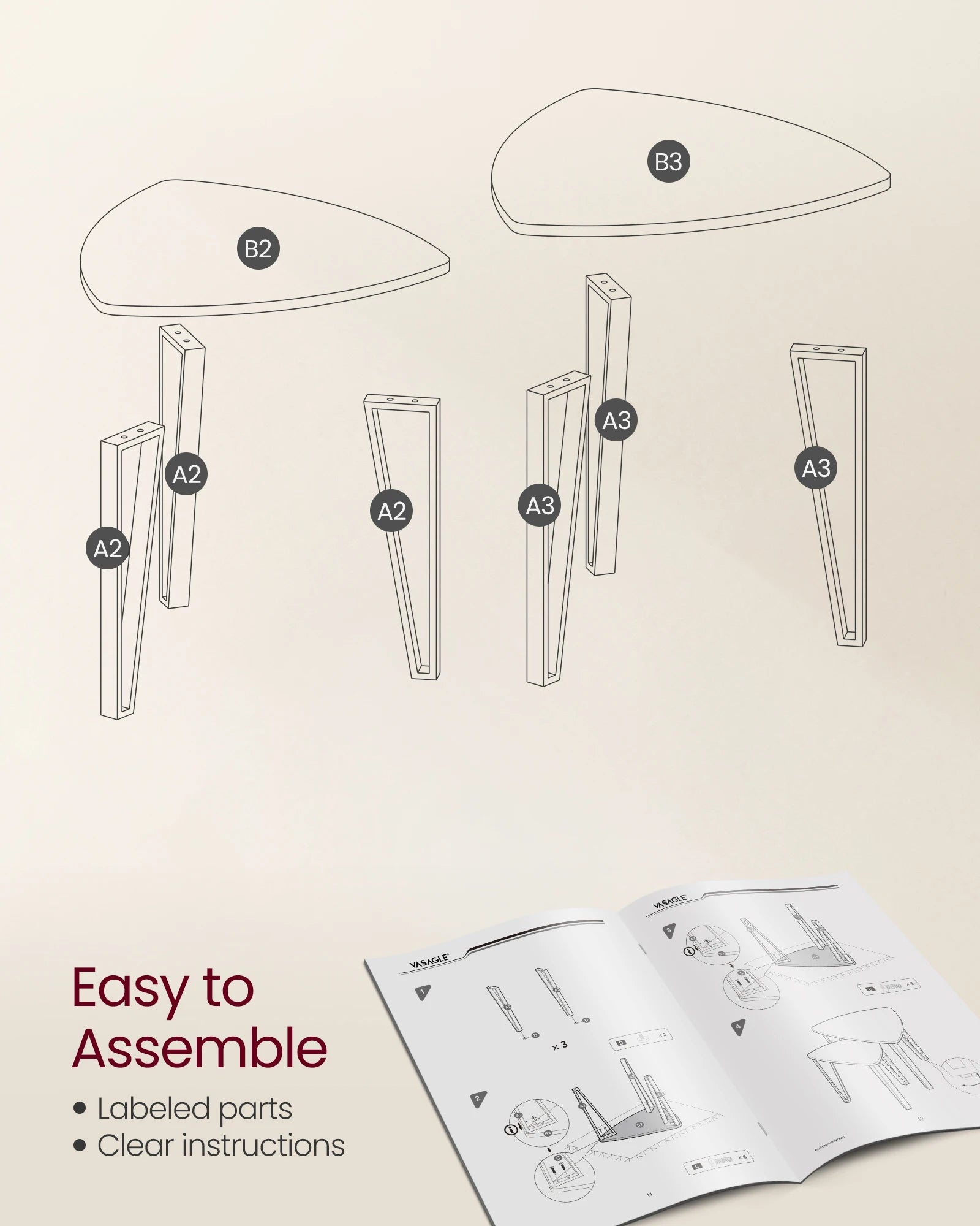[Easy Assembly] No need to worry about the assembly. With detailed instructions and labeled parts, you'll have this nesting coffee tables set of 2 set up and ready to hold your handy items in no time