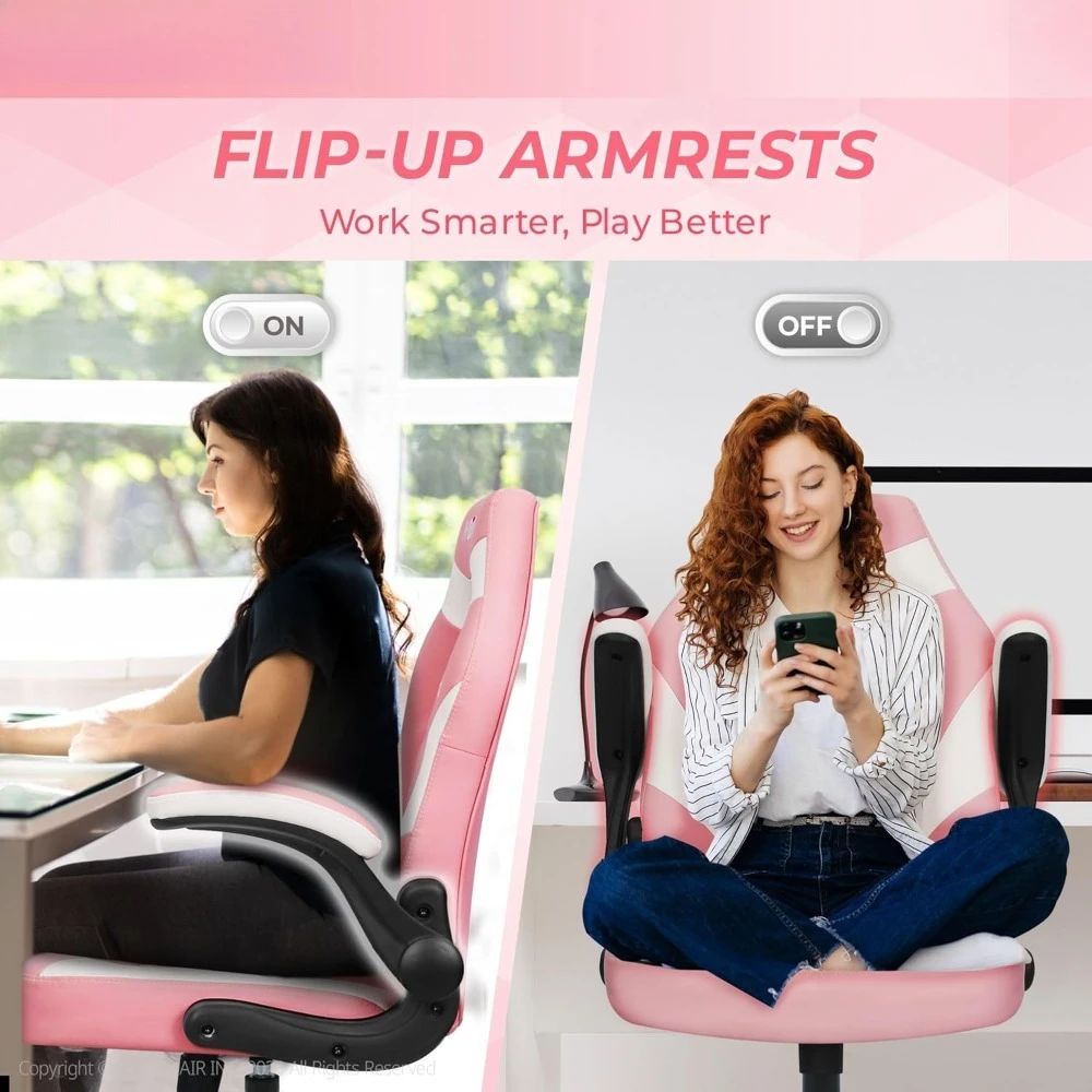 - Adjustable Armrests – Flip-up armrests improve space efficiency and adapt easily to different desk or gaming setups.