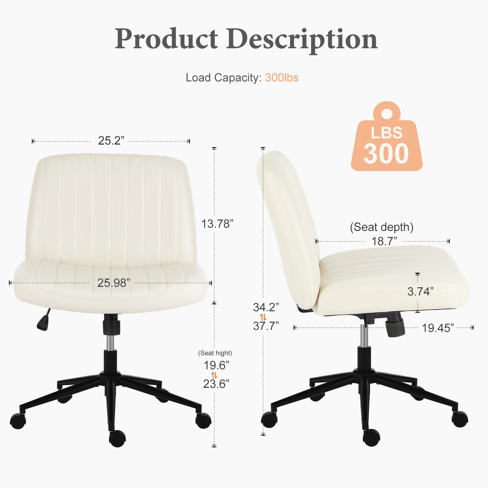 【Wide & Soft Seat】This armless office chair has a widened seat so you can comfortably sit cross-legged or curl up in the chair. The backrest and seat are padded with high resilience foam and covered with twill fabric upholstery for a soft, skin-friendly, long sitting experience. The metal base of this cross legged chair has a weight capacity of up to 300 lbs, ensuring stability and reliable support during use.