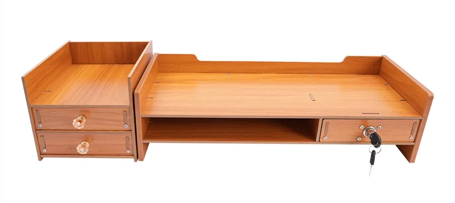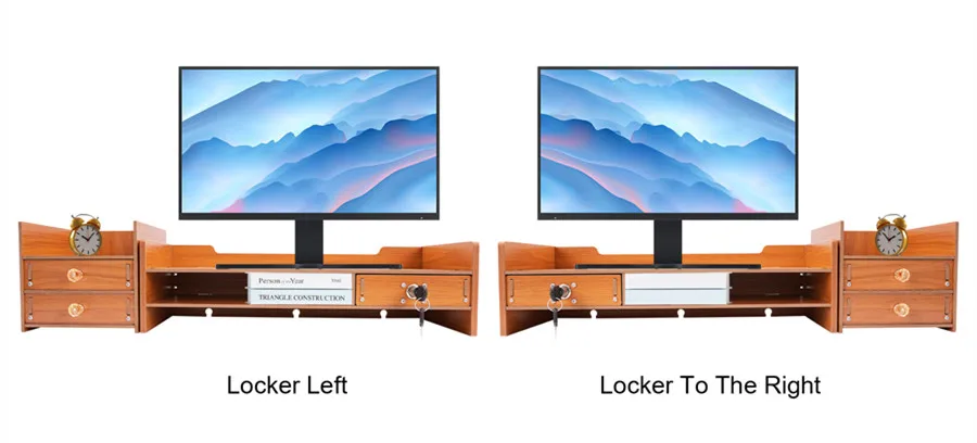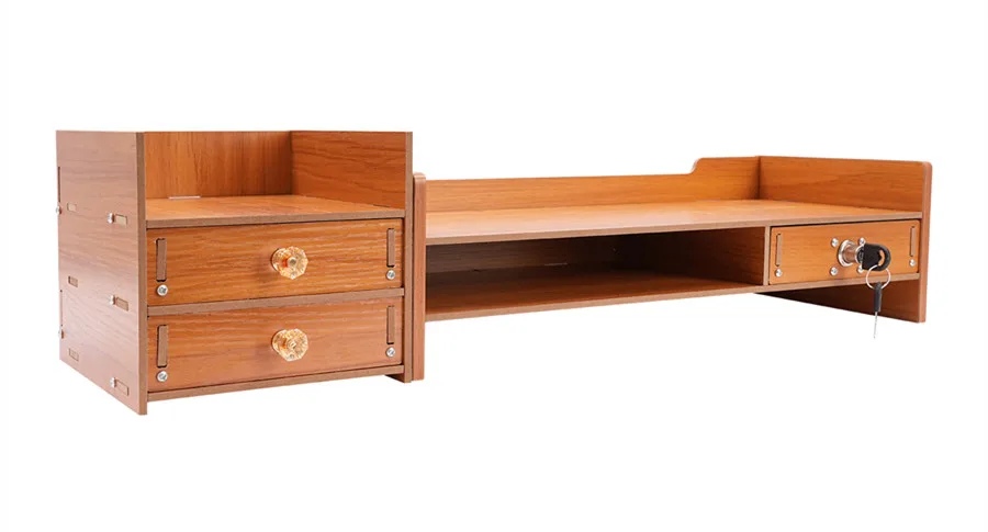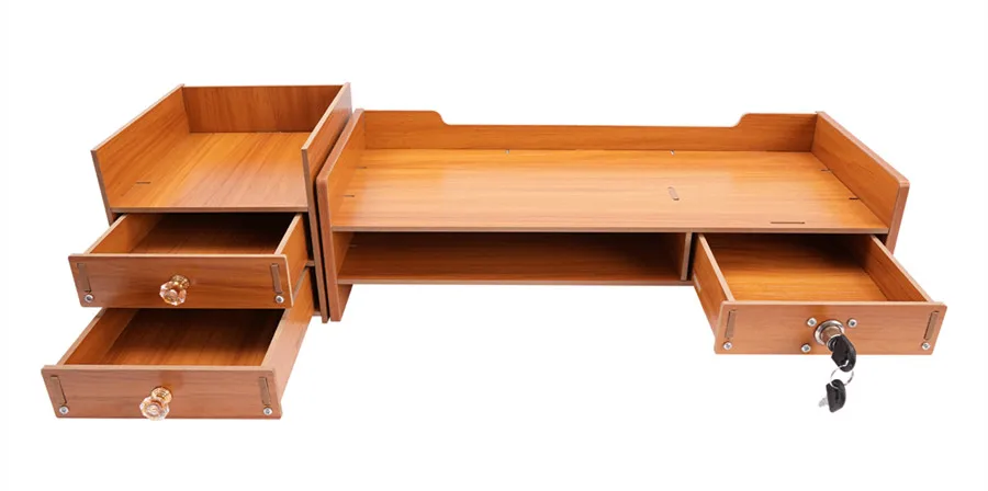 Computer Monitor Stand, Wooden Desk Organizer with Drawers Office Supplies Computer Desktop Tabletop