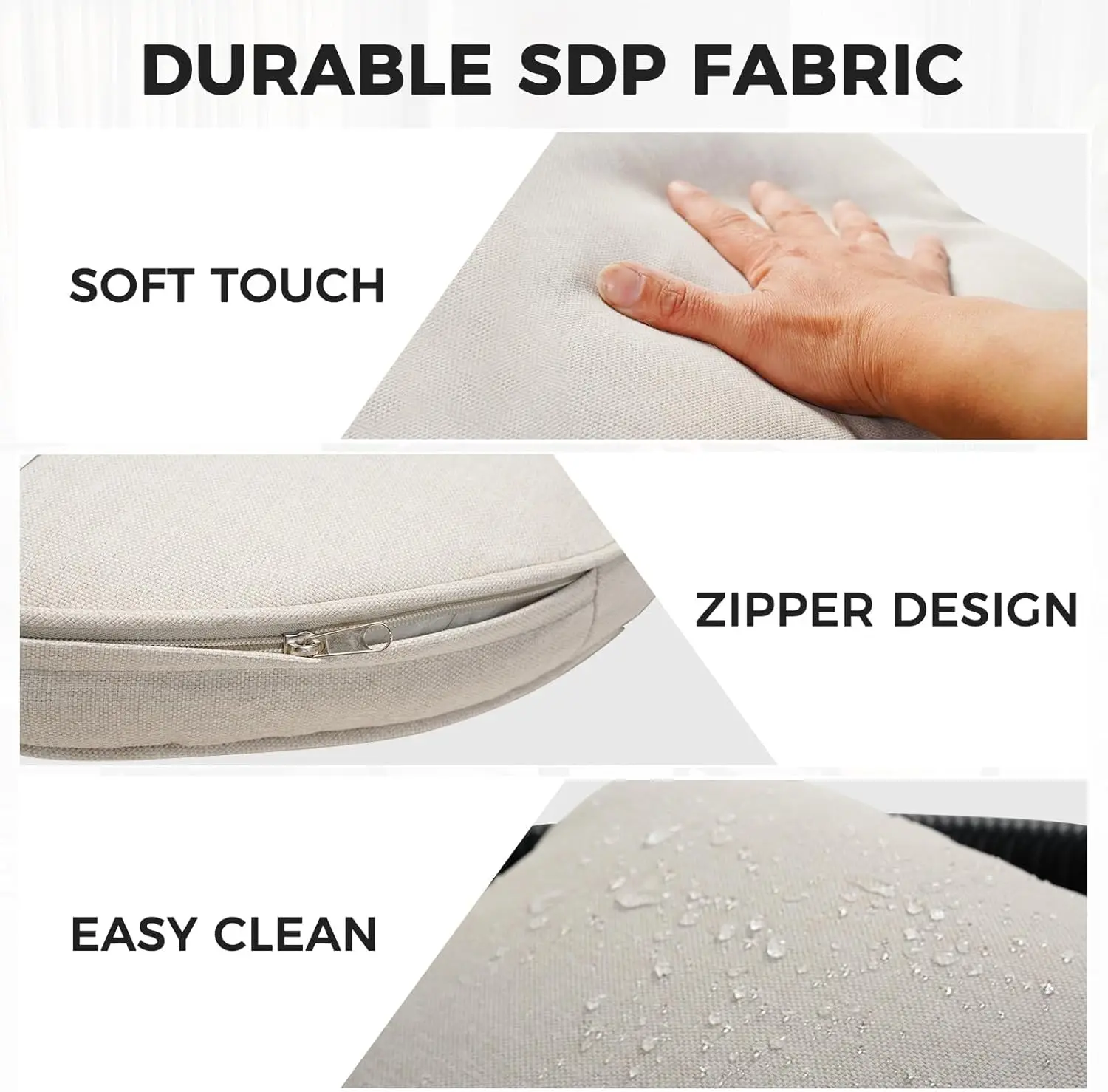 - THICKENED CUSHION: 230 grams of light-beige SDP fabric. Soft and skin-friendly, fade-resistant, durable and adaptable to many kinds of outdoor weather. The dining chairs with 3.15-inch cushions provide an upgraded level of comfort