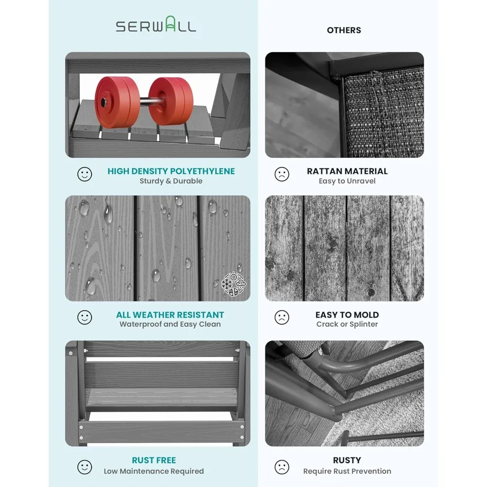 【All Weather Use】 patio dining sets are built to withstand the elements and provide long-lasting performance. The sturdy frames and high-density polyethylene materials ensure durability and reliability, allowing you to enjoy outdoor dining for years to come.