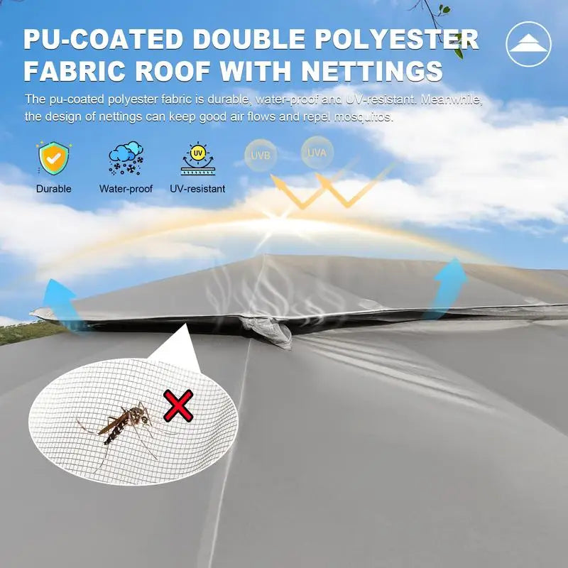 Multiple Hooks-- Two hooks on the top roof provide convenient hanging space for lights, fans, or decorations, enhancing your outdoor experience with added convenience.