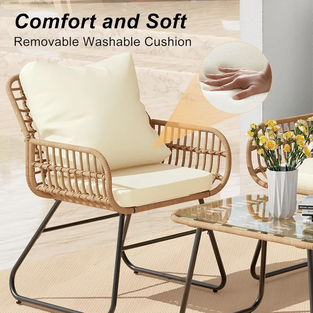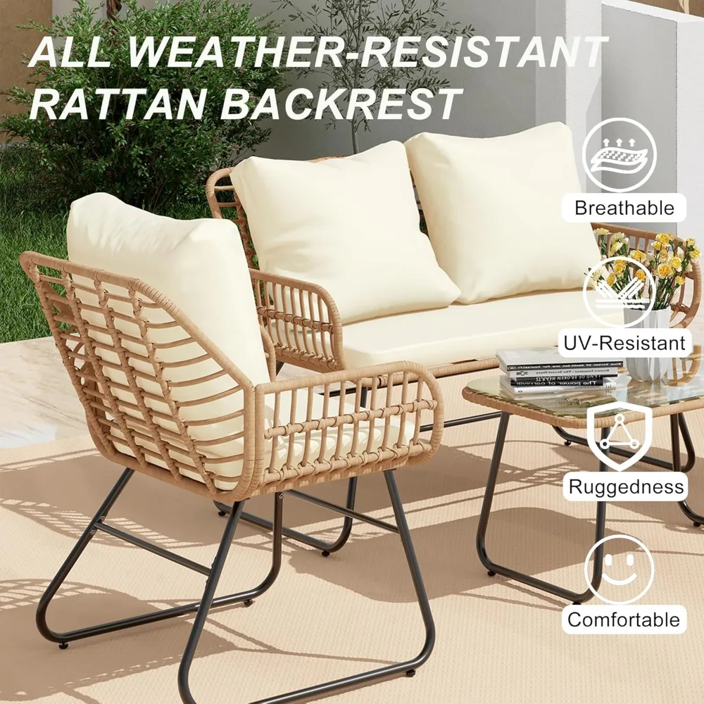 - 🌈【Stylish & Versatile Patio Set】The modern wicker design of this outdoor patio furniture set complements any outdoor space. Includes 2 chairs (240LBS single), 1 loveseat (450LBS), and a glass-top table (150LBS), perfect for creating a cozy patio conversation set.