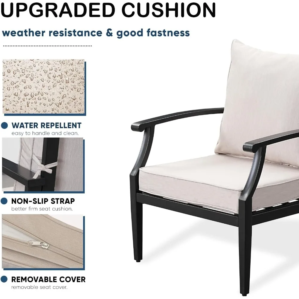 - 【All-Weather Metal Frame】This metal 4-Piece outdoor furniture set has a sturdy powder-coated iron frame. Compared to similar products on the market, it's oversized and has better corrosion resistance and rust prevention. No matter which season it is, you can put it outdoors with no worries. At the same time, the loveseat chair can easily hold up to 660 lbs, and the single chair can also take 330 lbs. It's really sturdy and durable.