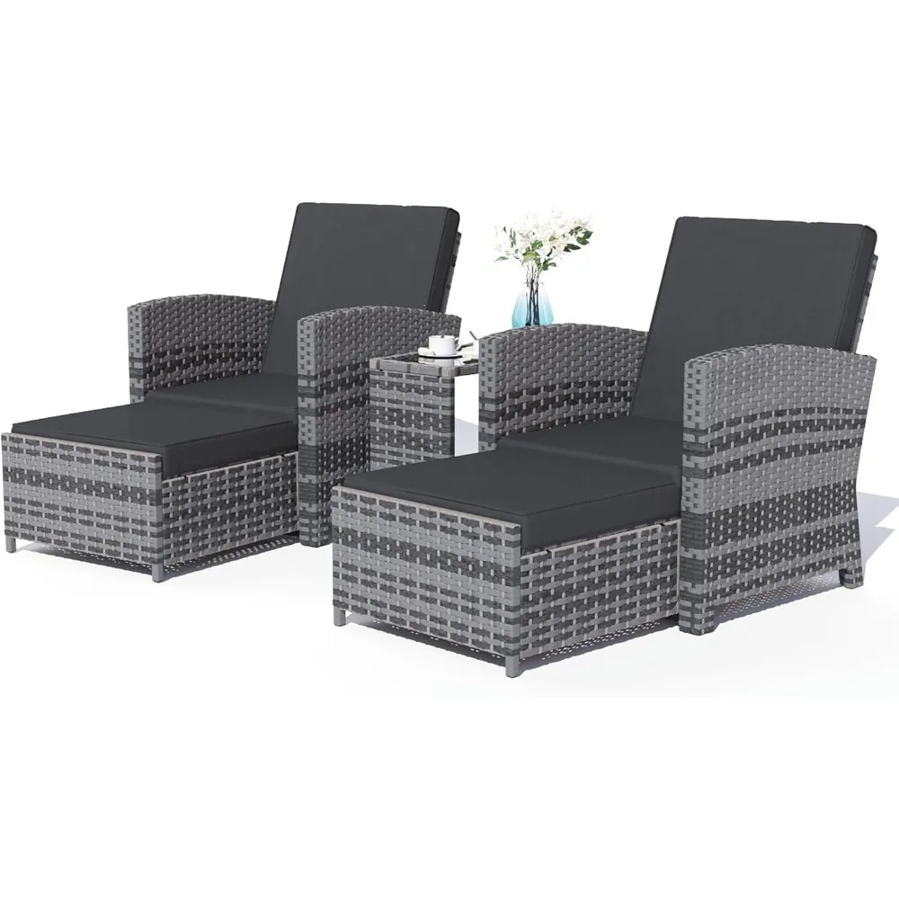 - 【Space-saving Ottoman】The ottoman included in this patio furniture set serves multiple purposes. Designed to fit perfectly under the chair, it not only saves space but also acts as an extension seat. By pulling out the ottoman, you can transform it into a recliner, offering extra foot support and enhancing your overall relaxation experience. This versatile ottoman adds functionality and convenience to the set.