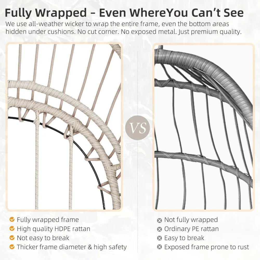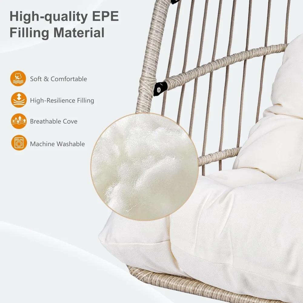 - 【Ultimate Comfort & Versatile Indoor-Outdoor Use】Designed for superior relaxation, this hanging egg chair includes a cloud-soft seat cushion and headrest pillow, made from 100% polyester fabric and plush cotton filling. The cushions are breathable, fade-resistant, and machine washable, ensuring long-lasting comfort. Ideal for living rooms, bedrooms, patios, gardens, this stylish swing chair enhances any space—perfect for enjoying a cup of tea, sunbathing, or reading a book.