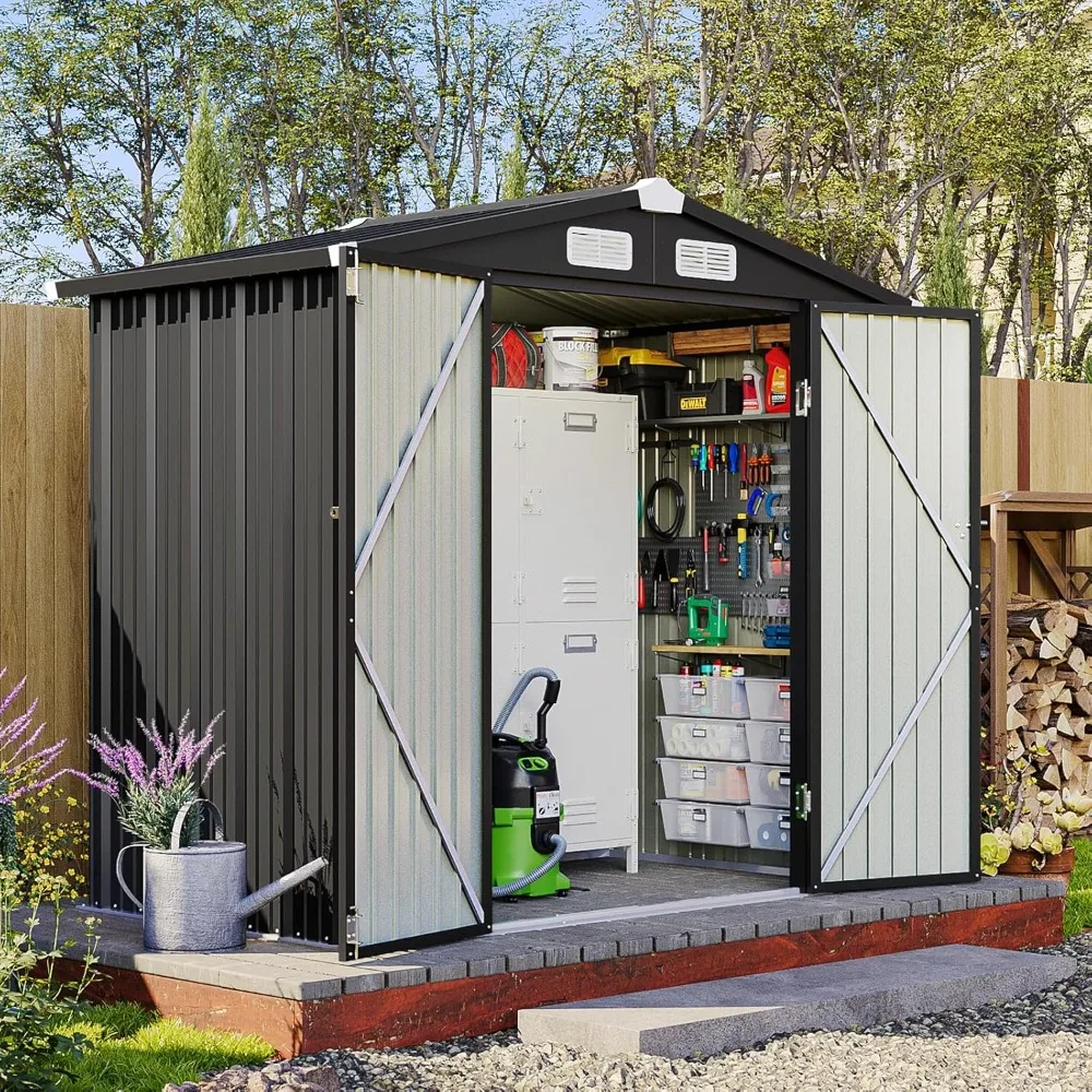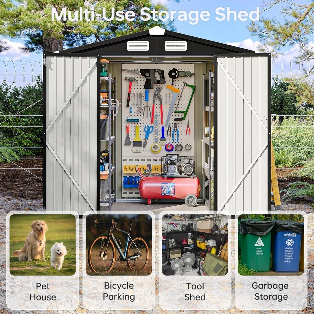 - Robust & Weatherproof Build: This outdoor storage shed is constructed from galvanized steel with waterproof engineering. It delivers enduring resilience against severe weather. Its reinforced metal roof and walls prevent deformation, while the sturdy frame withstands winds up to 30mph (Level 6) and snow loads of 6 inches.