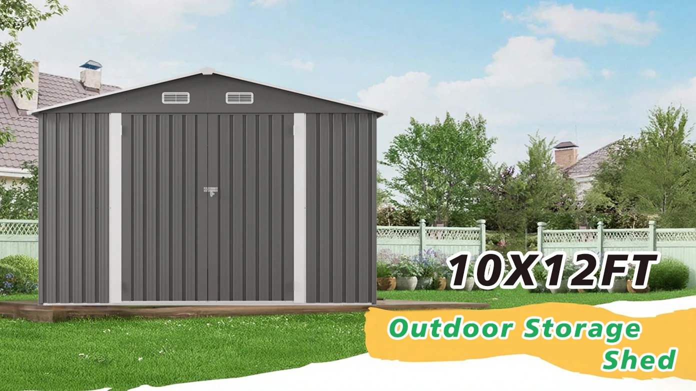 Outdoor Storage Shed - Metal Garden Shed with Double Door