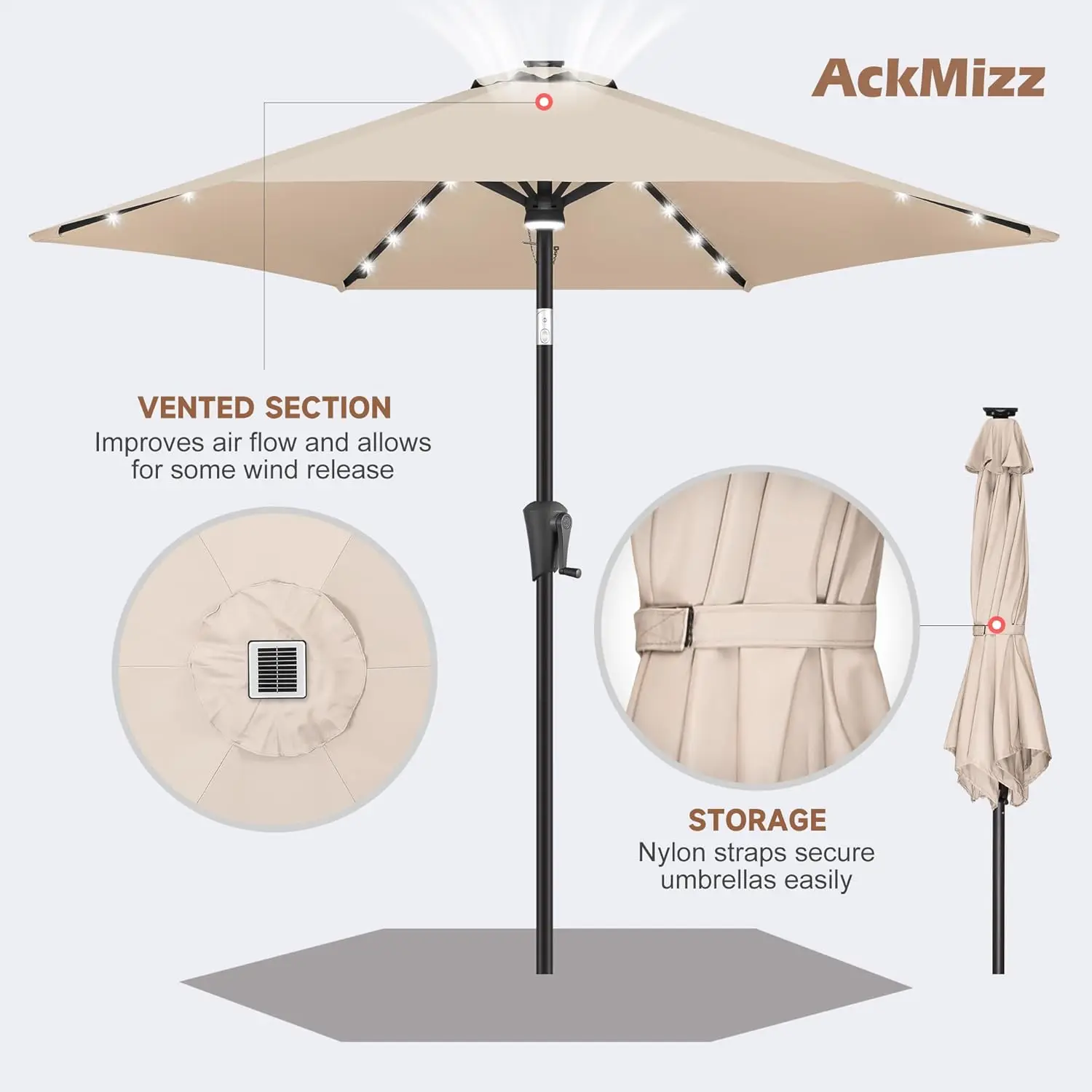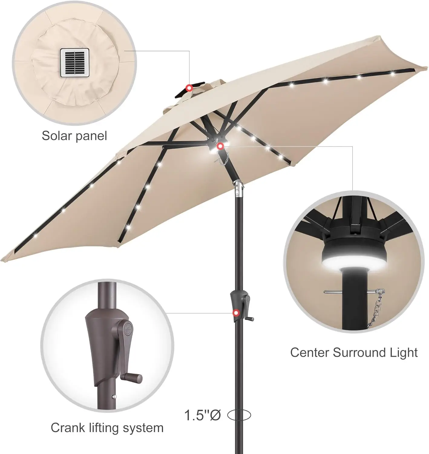 10ft Solar Patio Umbrella - Outdoor Umbrella with Centre Surround Light 24 LED Beads, Market Table Umbrella with Tilt & Crank