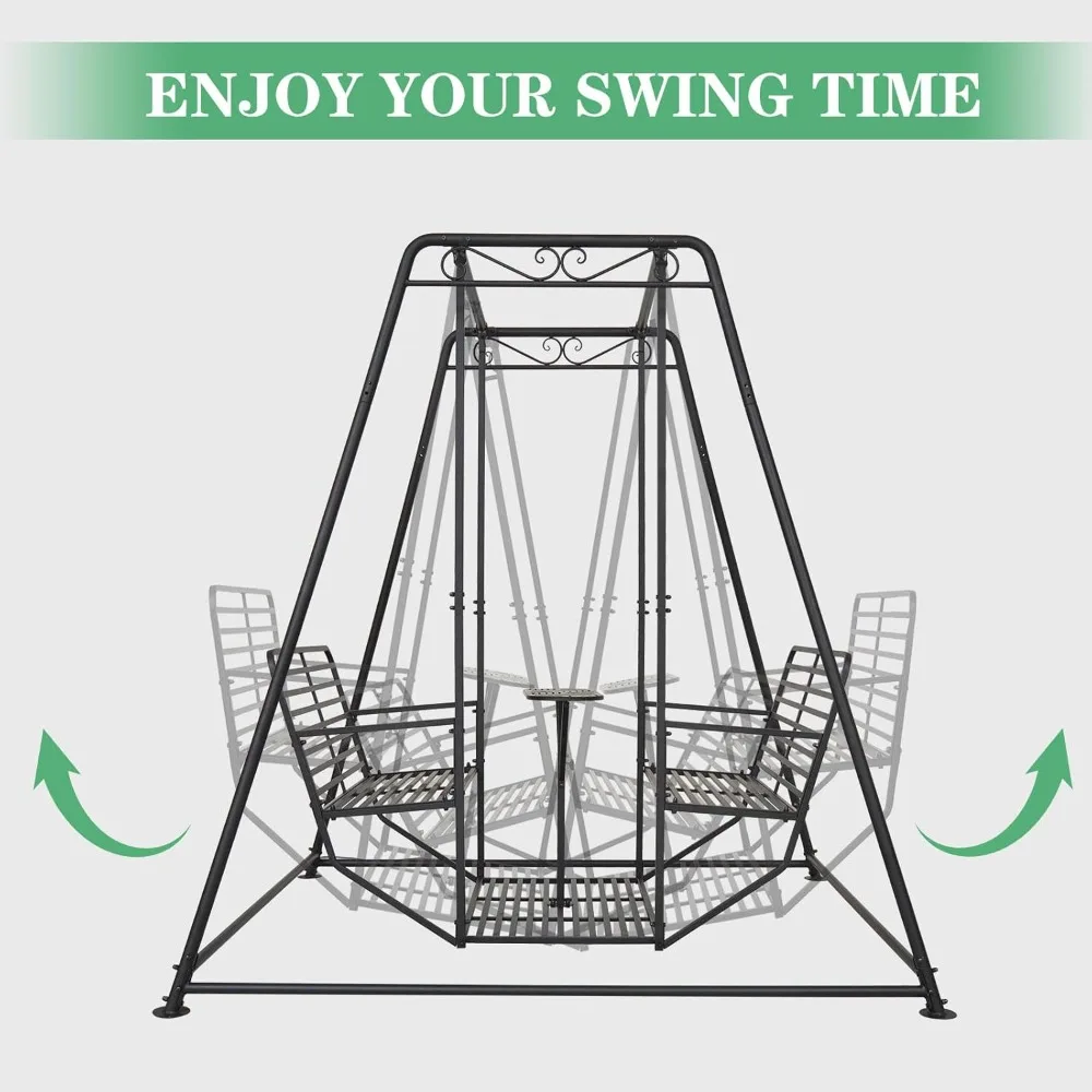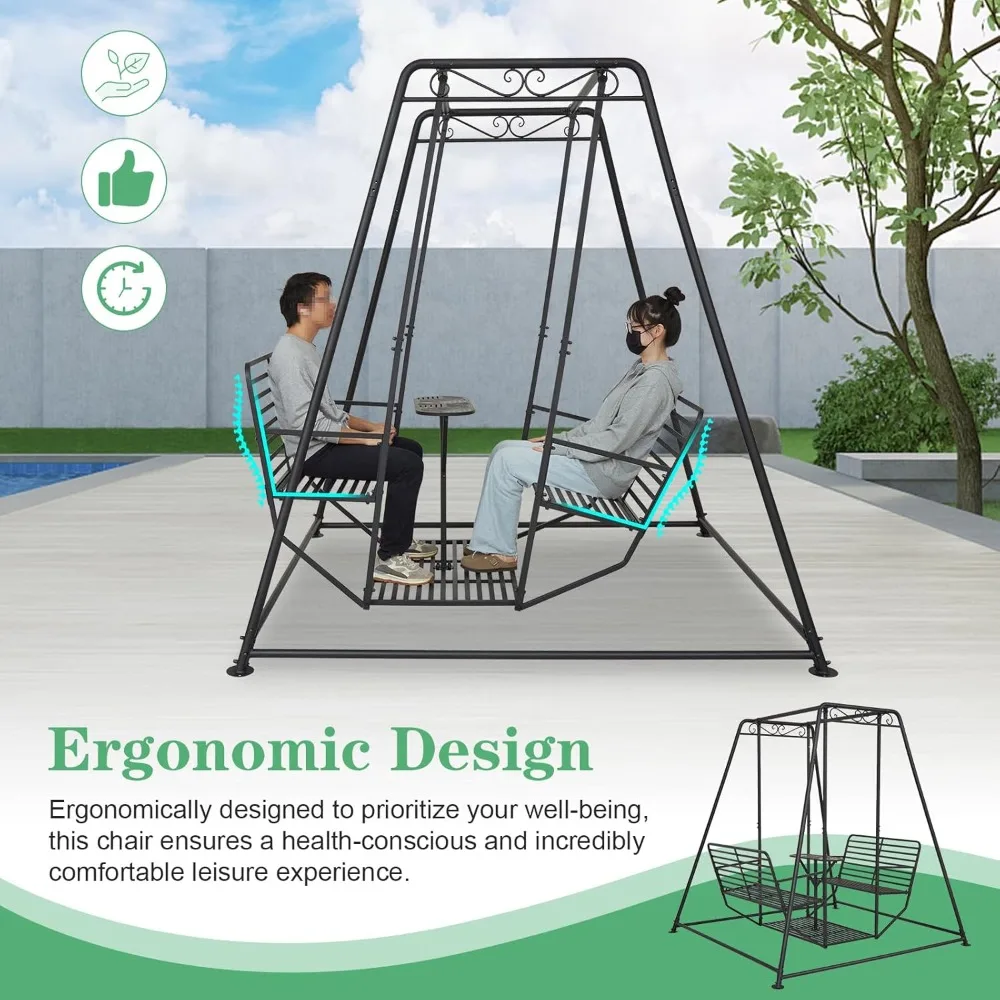 - 【Convenient Table】Our porch swings outdoor includes a built-in table, which is perfect for holding coffee, snacks, and magazines during your leisure time. You can enjoy afternoon tea, sunbathing, chatting or reading. This swing chair is also very suitable for your backyard, courtyard, garden, terrace, balcony or swimming pool.