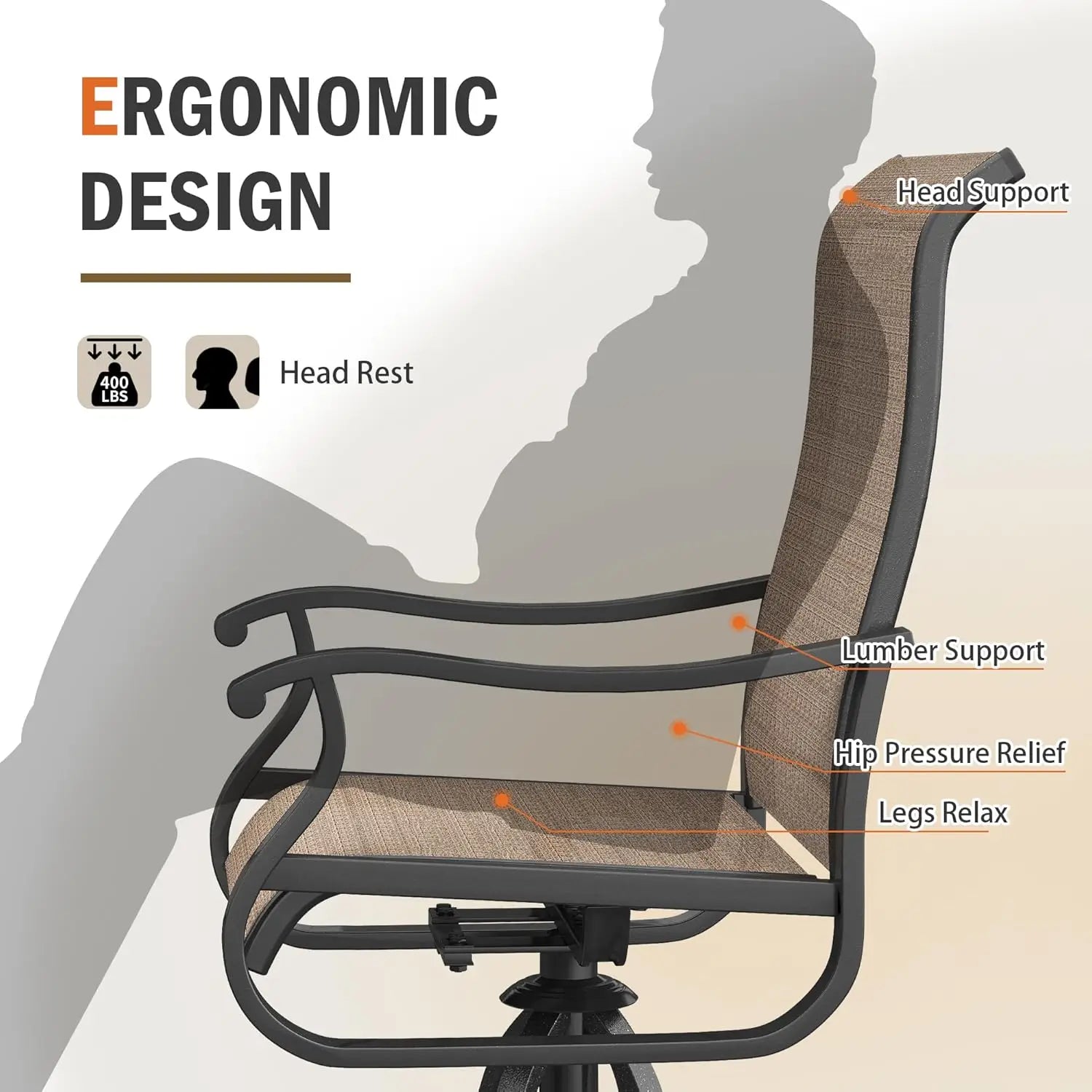 Patio Swivel Chairs Set of 4, Outdoor Patio Dining Chairs with All Weather Textilene Black Metal Frame for Lawn Garden Backyard, Brown