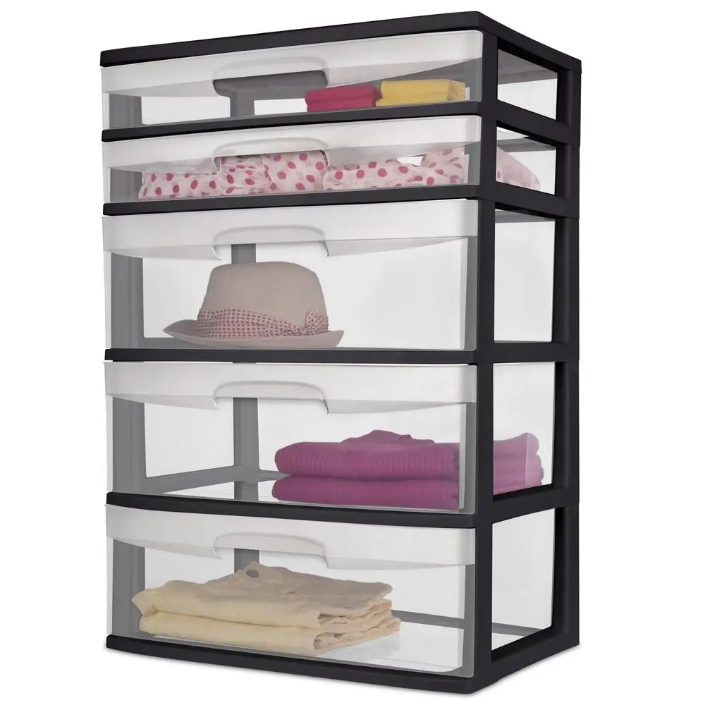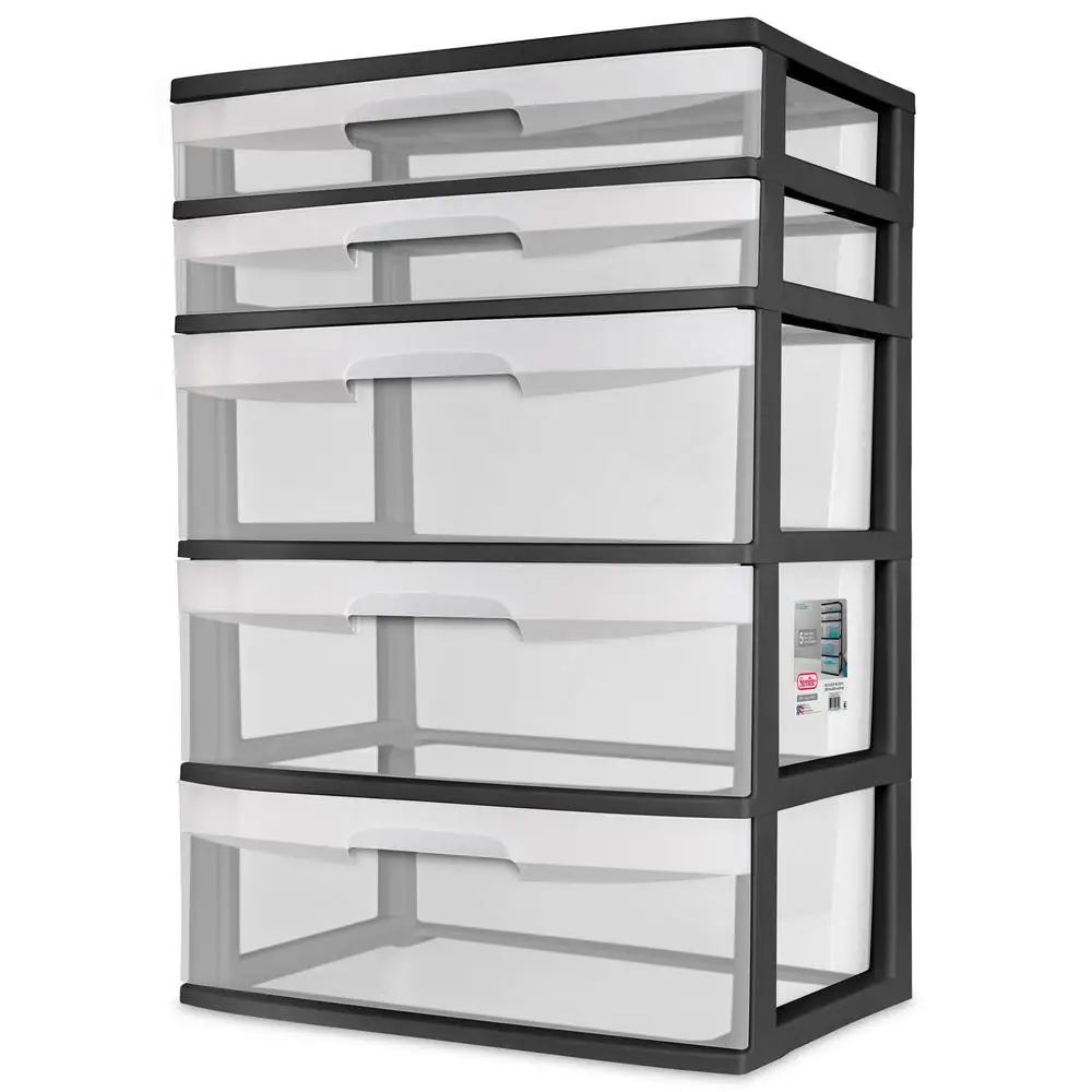 Sterilite Adult Plastic 5 Drawer Wide Tower Black: