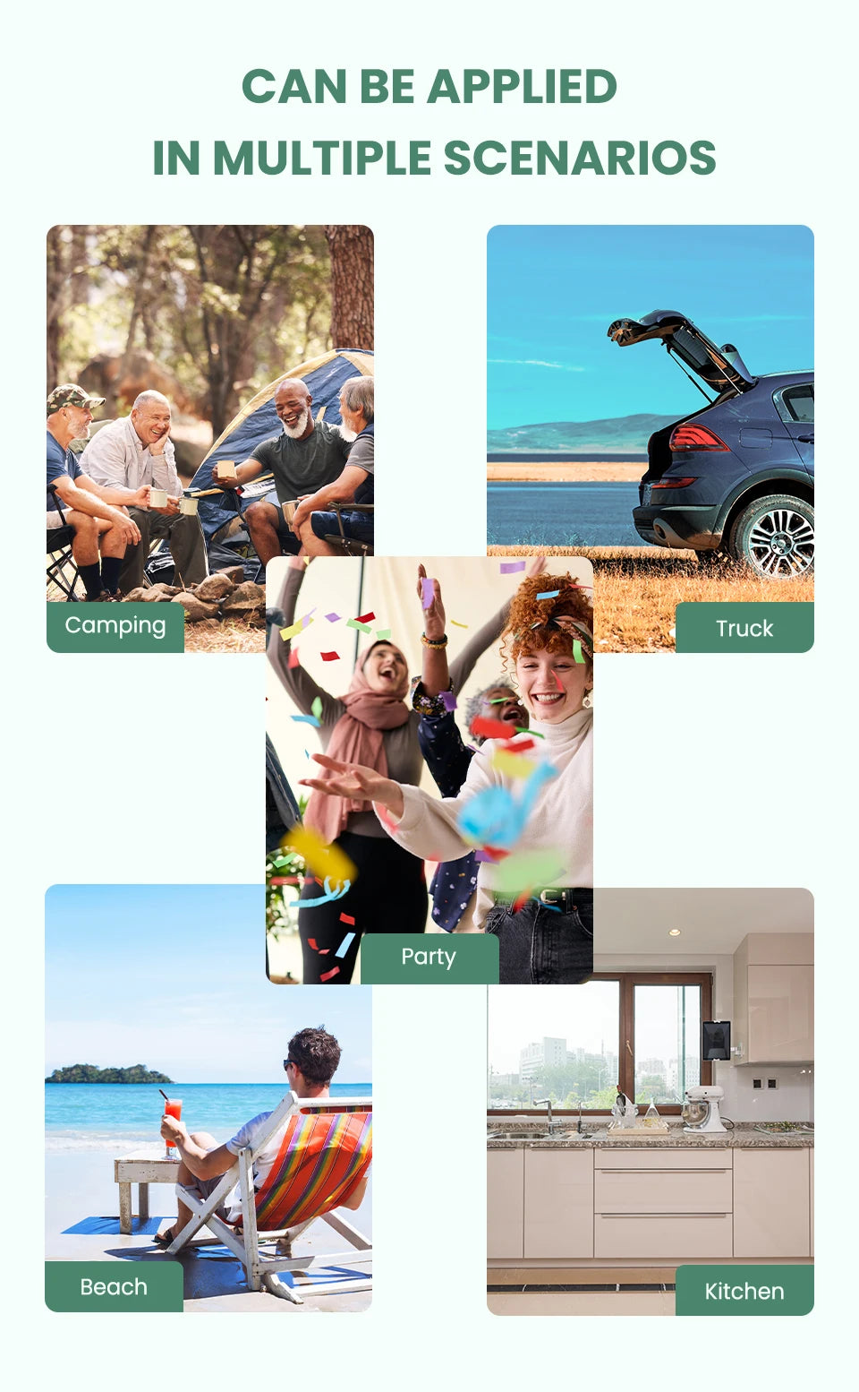 To ensure the safety of your vehicle's battery, this camping fridge offers three levels of battery voltage protection (H/M/L), to prevent the electric cooler draining your car’s battery. When it detects low battery voltage of your vehicle, it will automatically stop working. Additionally, the RV fridge supports two power supply options, 100/240V AC or 12V/24V DC, providing flexibility for usage anywhere.