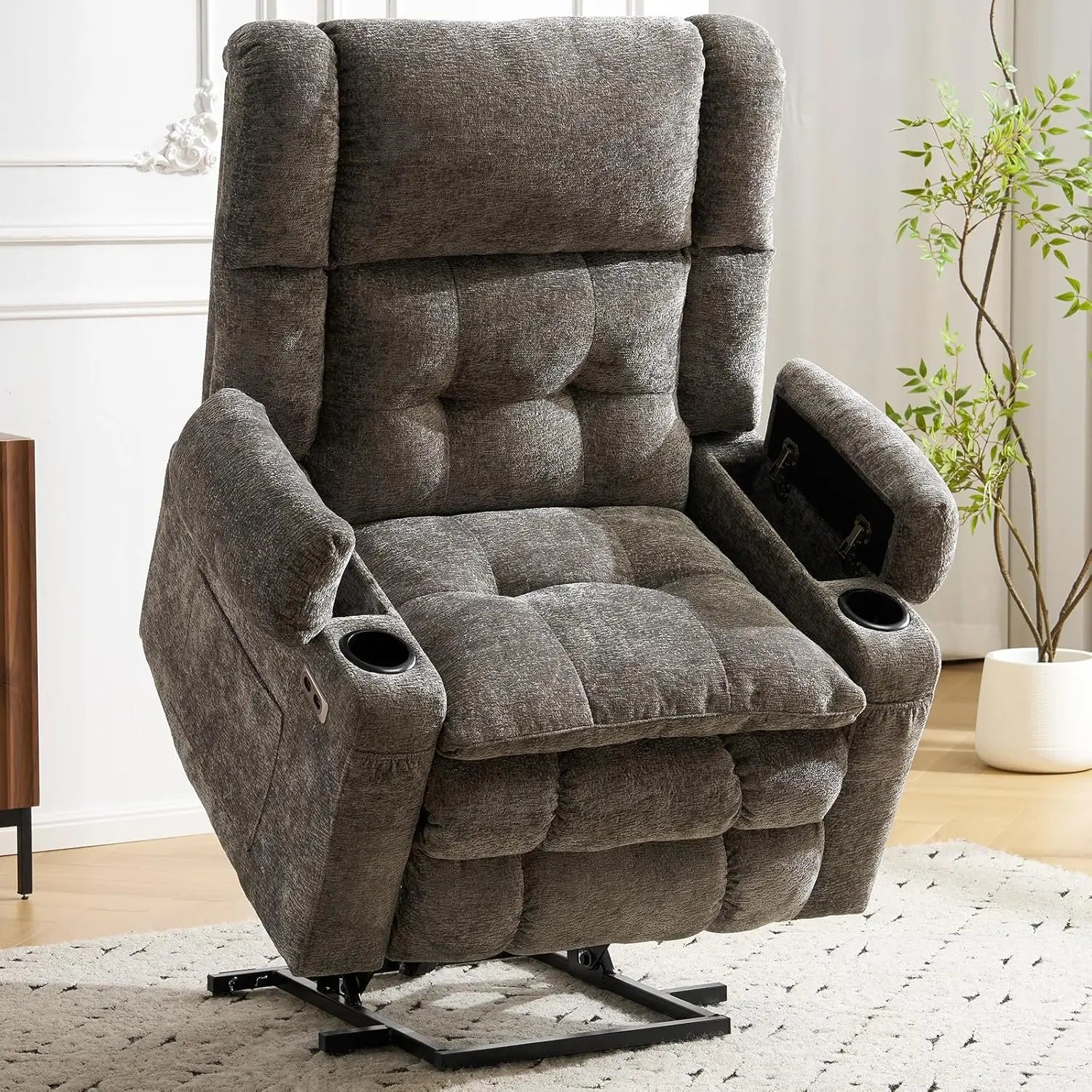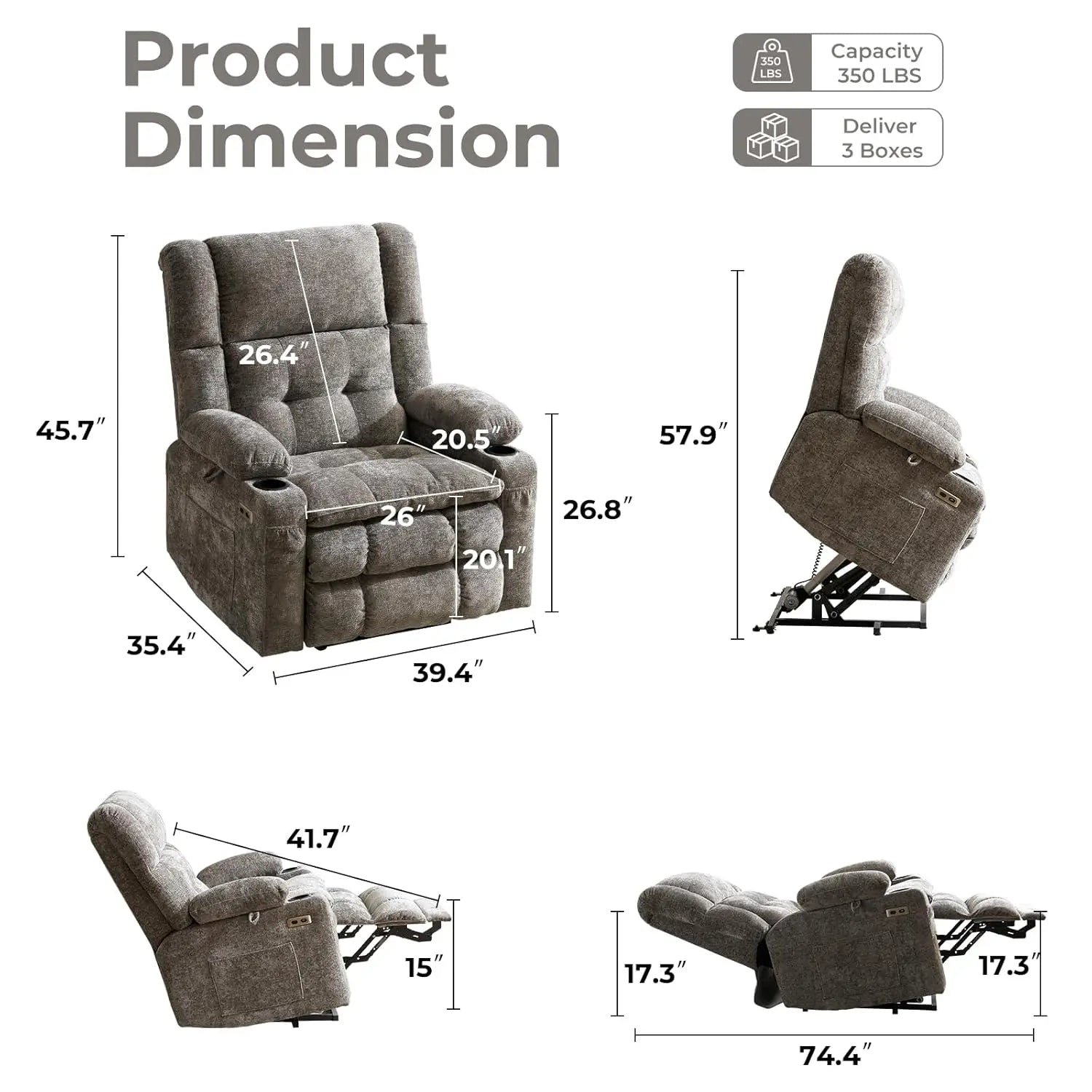 26" extra-wide seat & Flip Arm Storage: Our oversized recliner chair has a roomy, comfortable 26" seat that is suitable for a wide range of people, especially tall men, adults and the elderly. The power lift recliner with arm storage for easy access and use of your stuff, which can be used to put things to save space.