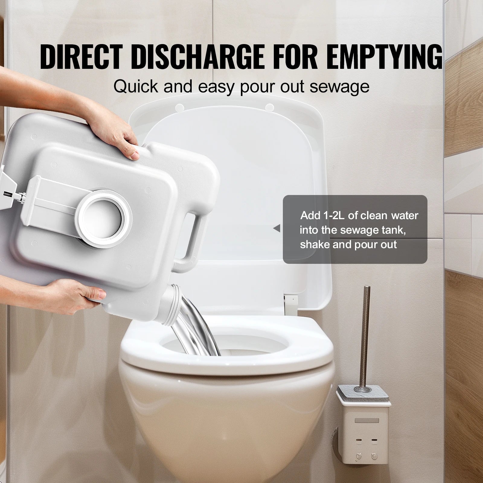 Easy to Empty and Clean: Featuring a straight discharge outlet design, there's no need for extra complicated operations—just add water, shake, and pour out the waste directly. The toilet seat and lid can be individually removed for easy cleaning.