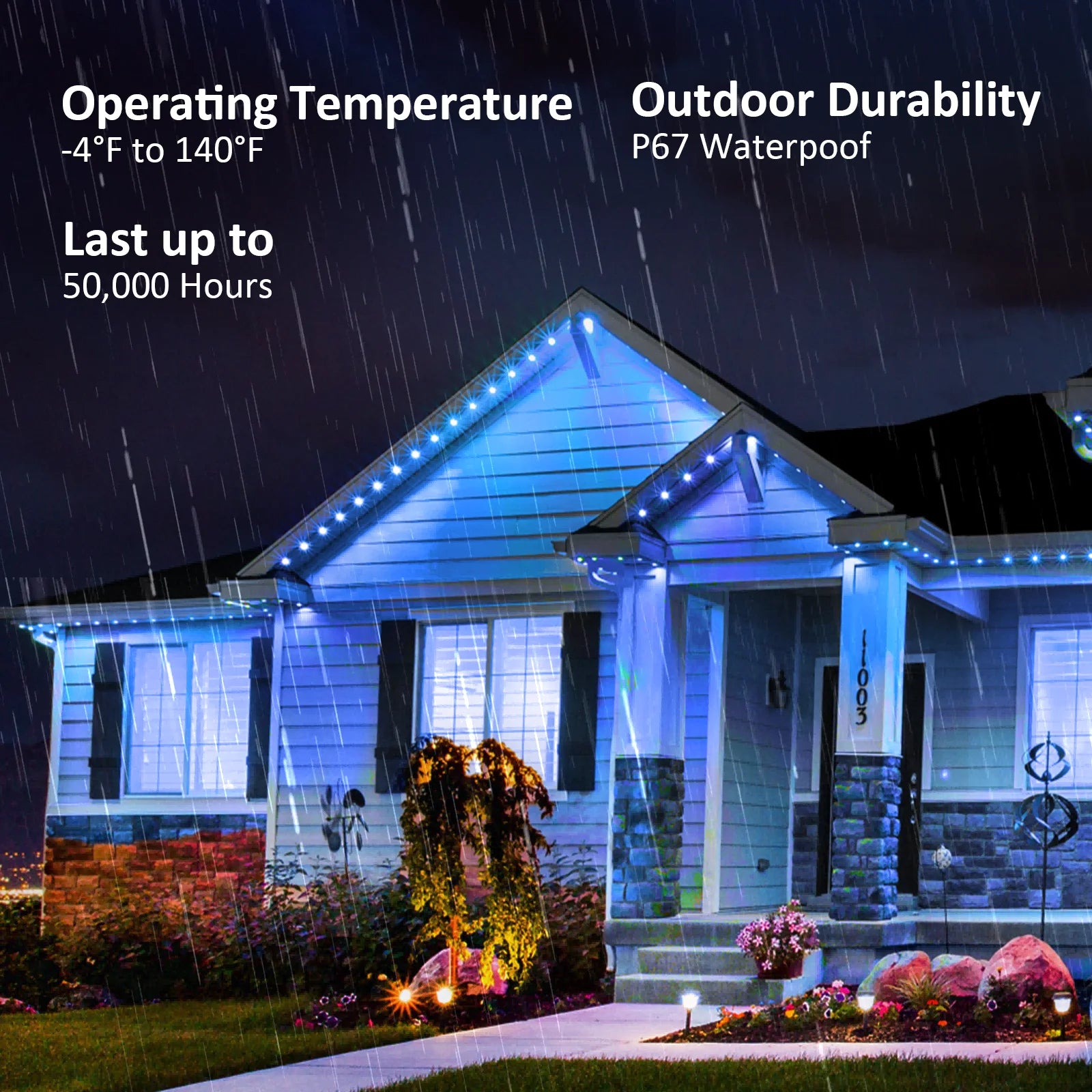 ur multi-functional eave lights can not only meet a variety of holiday decorations, but also meet daily and accent lighting requirements. Soft RGB lighting illuminates your outdoor areas and creates a cosy and warm atmosphere for any occasion. Whether you're hosting a family gathering, spending quality time with friends, or seeking peaceful moments alone, our lights provide the perfect ambiance to match day or night.
