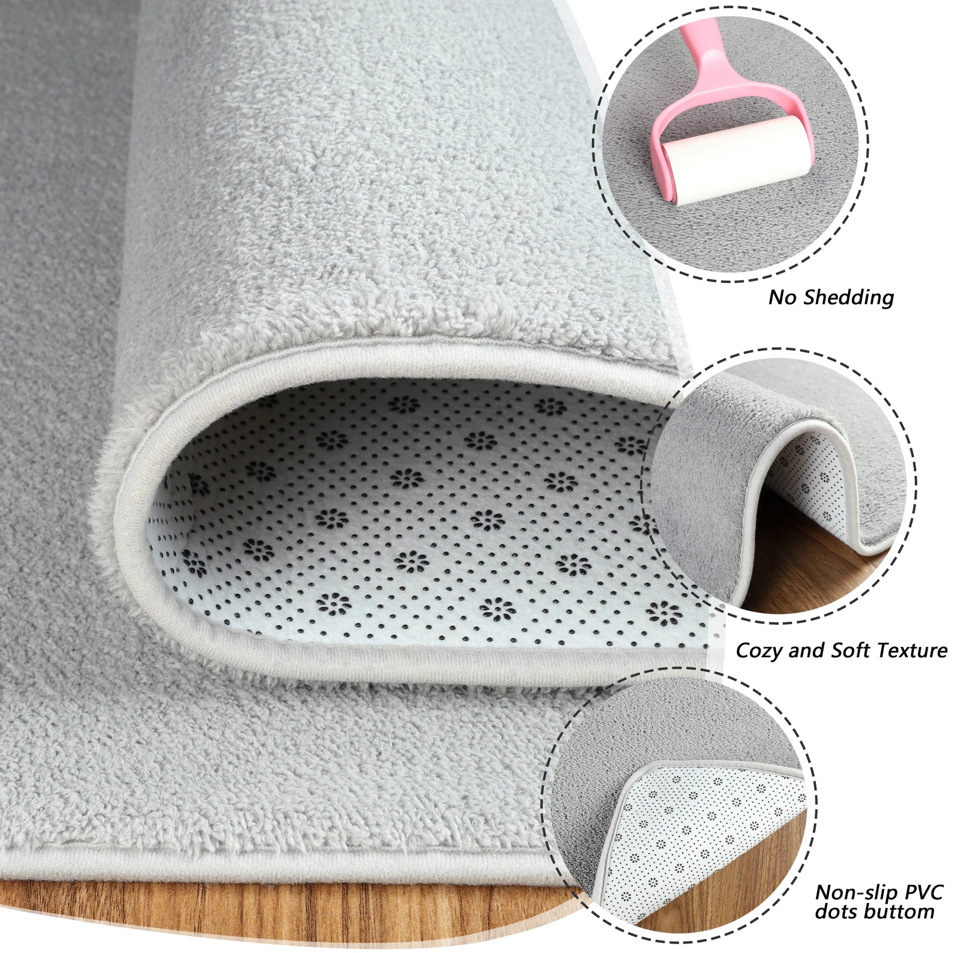 Thousands of Non Slip Dots: Our fluffy carpet is back with thousands of non slip grip dots that help hold in place on wooden or other floor, and hold up even with kids and pets; This fluffy carpet is a great decor for the kids bedroom, nursery and dorm