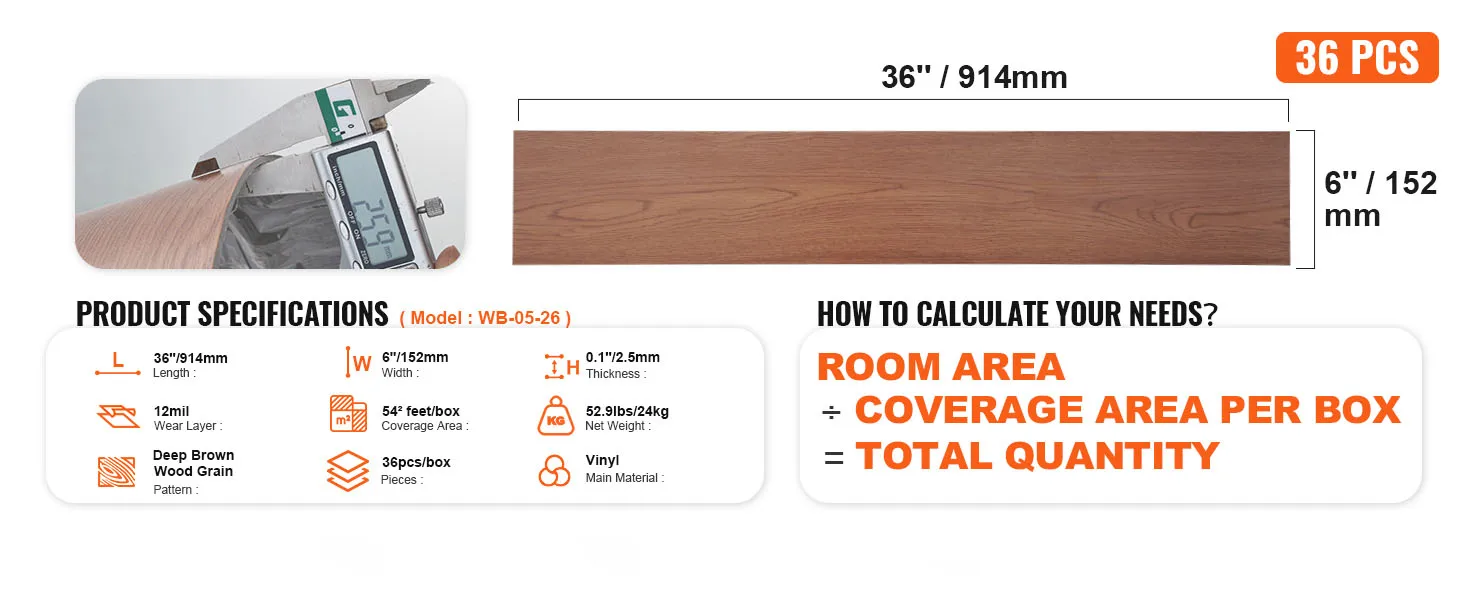 Decorative Home: Featuring a wood grain appearance, the surface of this peel and stick floor boasts authentic and clear textures, with a smooth and sleek finish, creating a beautiful look reminiscent of real wood flooring to enhance the aesthetics of your home.