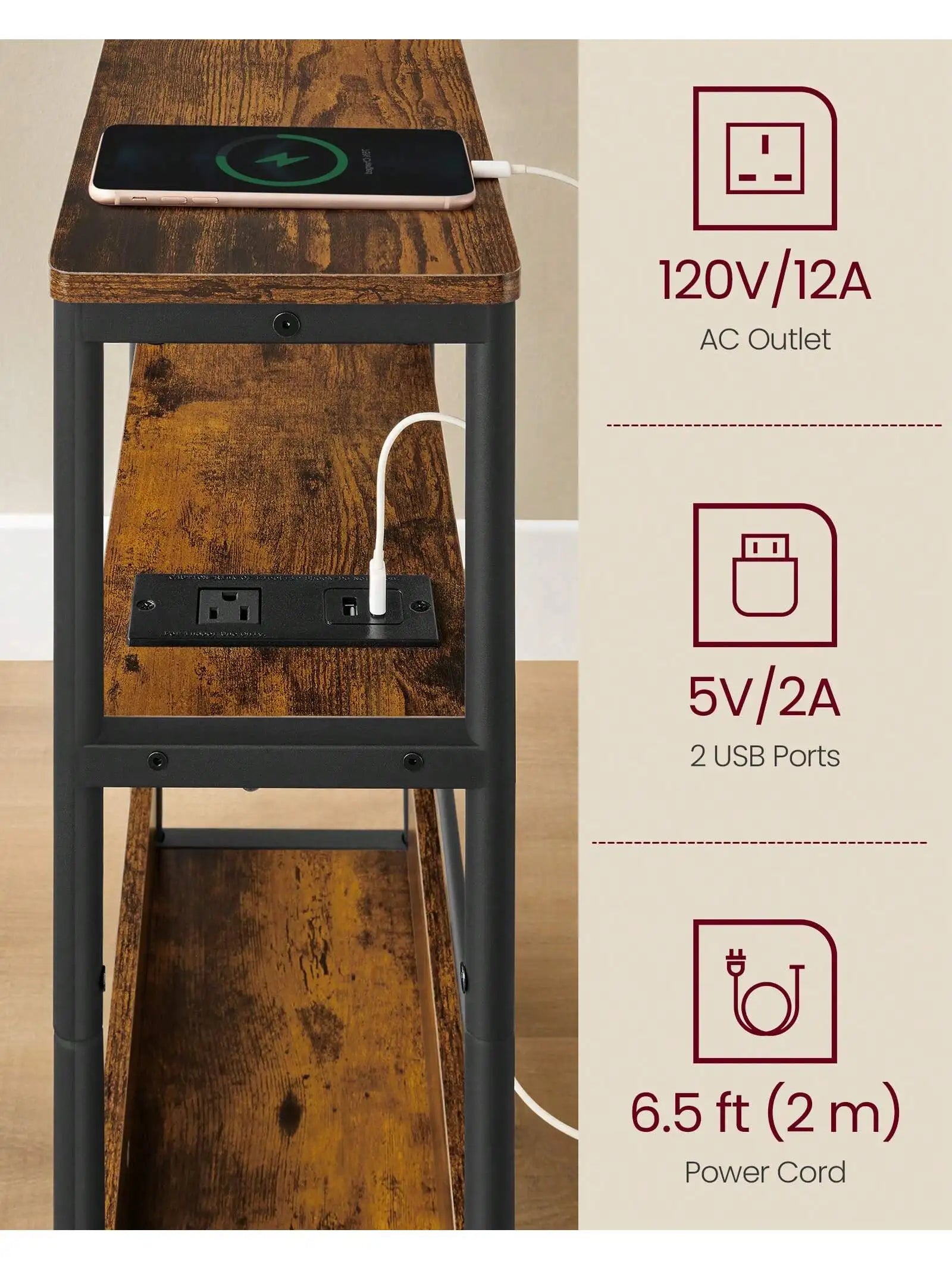[Built-In Charging Station] Equipped with 1 AC outlet and 2 USB ports, this slim side table allows you to charge your phone, tablet, and other devices at the same time. With a 6.5 ft cord, you have the freedom to place this table wherever you need it