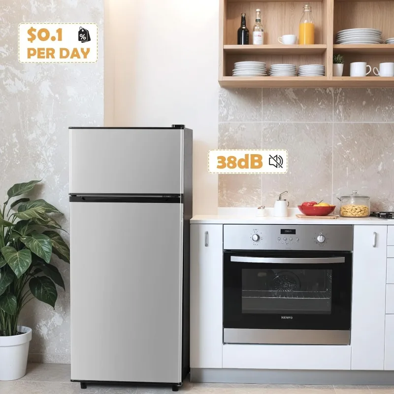 - 【Enough Capacity】This mini fridge has a capacity of 4.5 cubic feet, with 1.1 cubic feet in the upper freezer compartment and 3.4 cubic feet in the lower freezer compartment.This small refrigerator has so much space that you can store any of your favorite foods and drinks in it