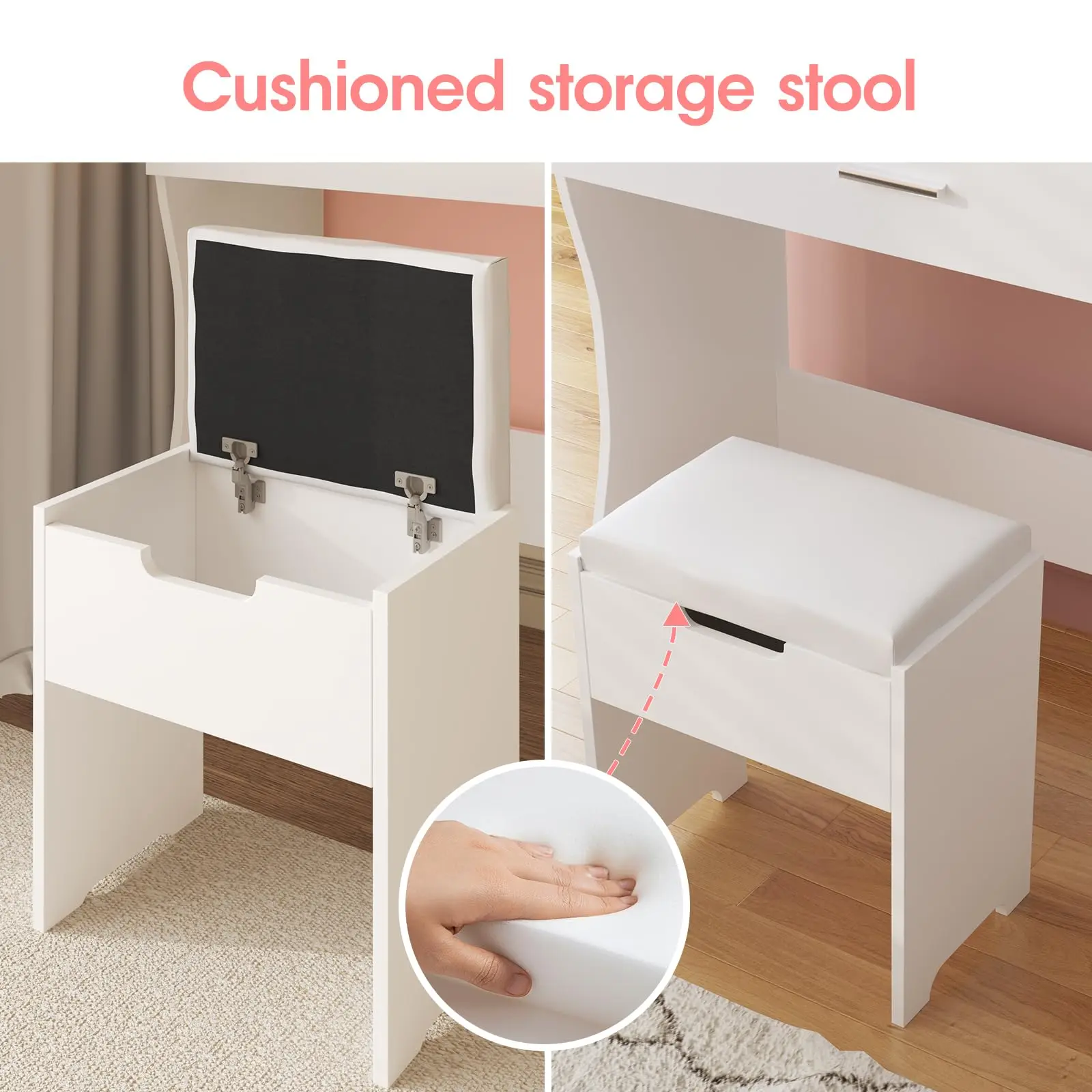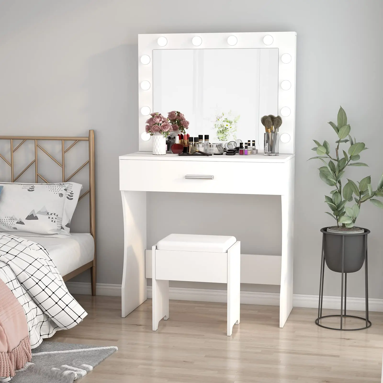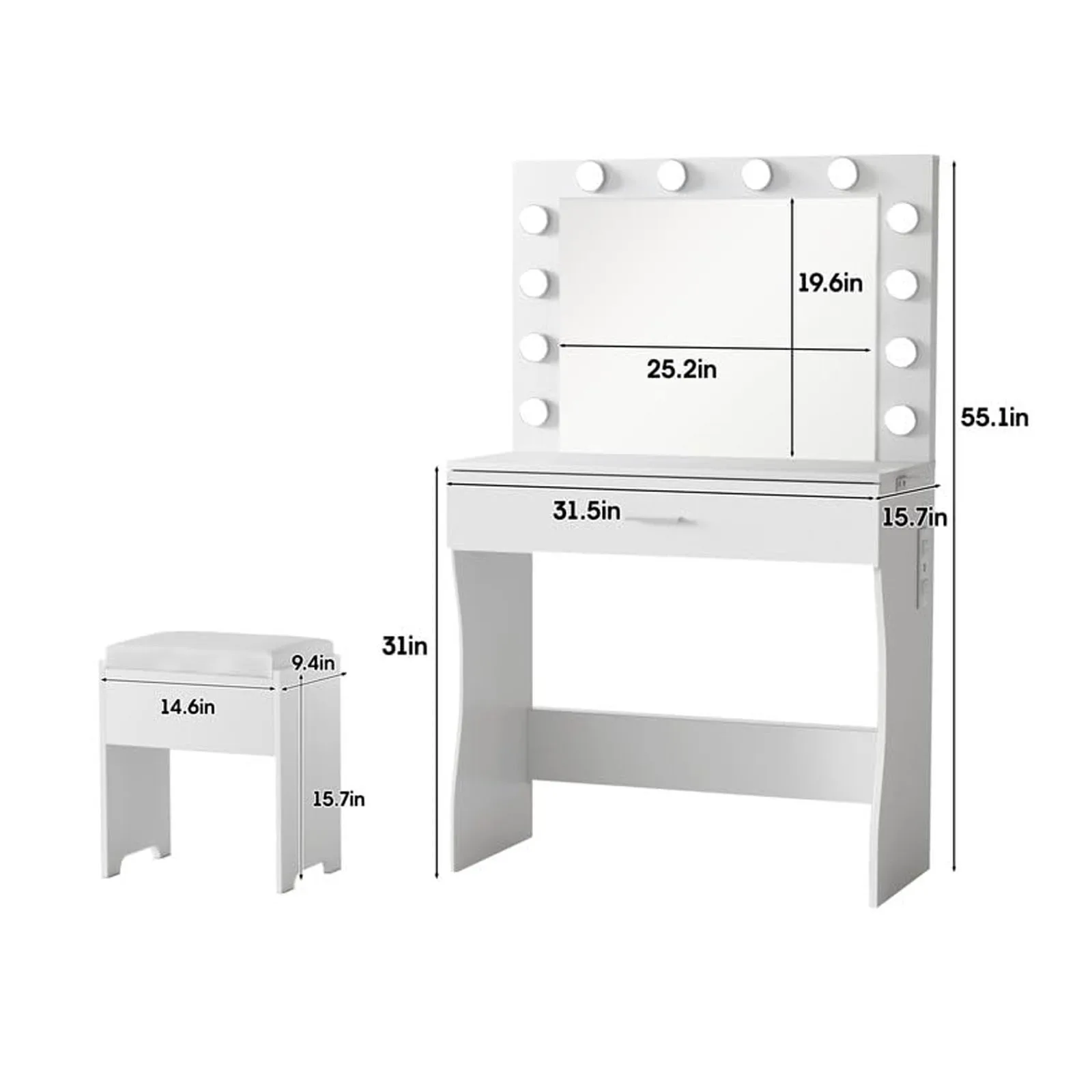 Vanity Makeup Desk with Lights Mirror & Cushioned Stool