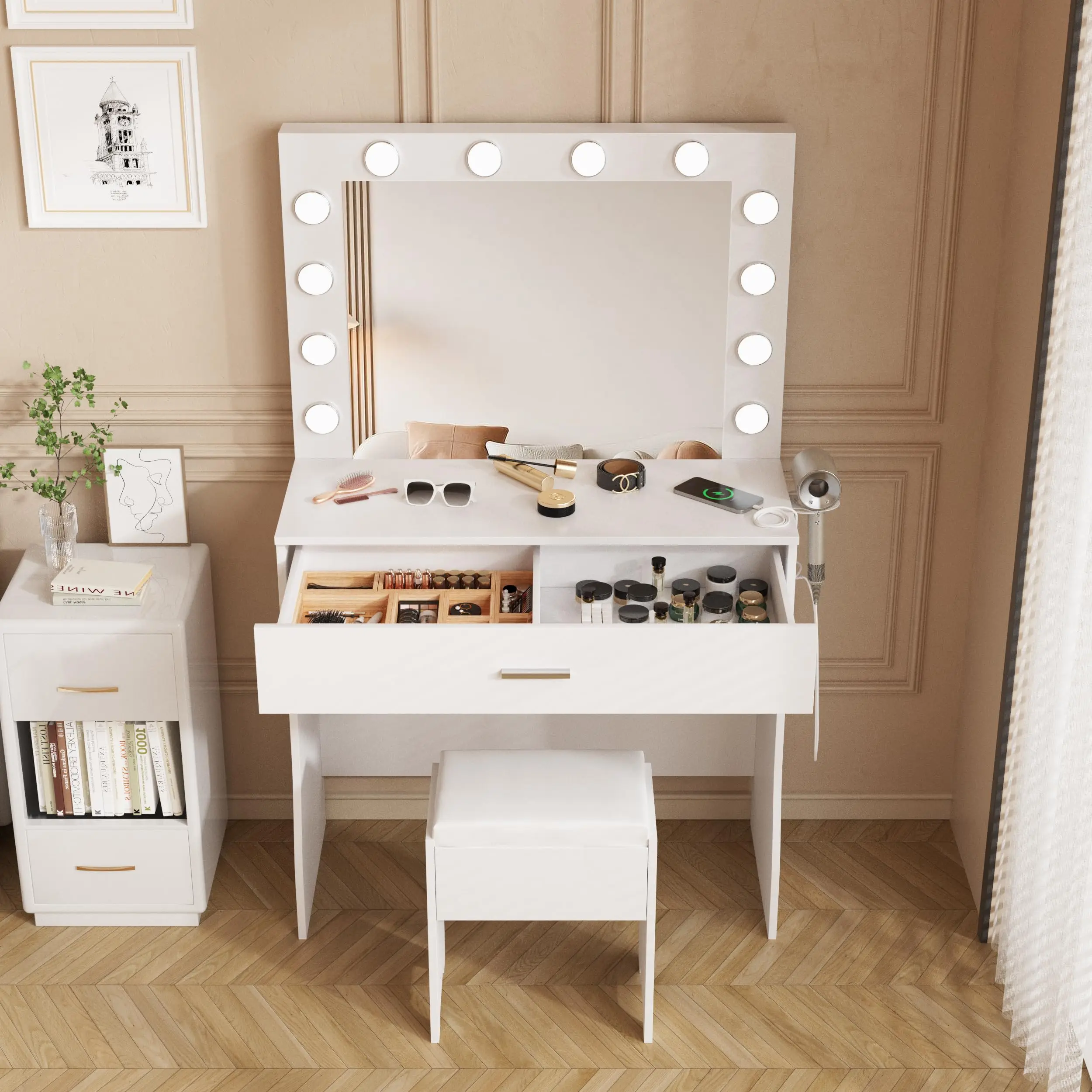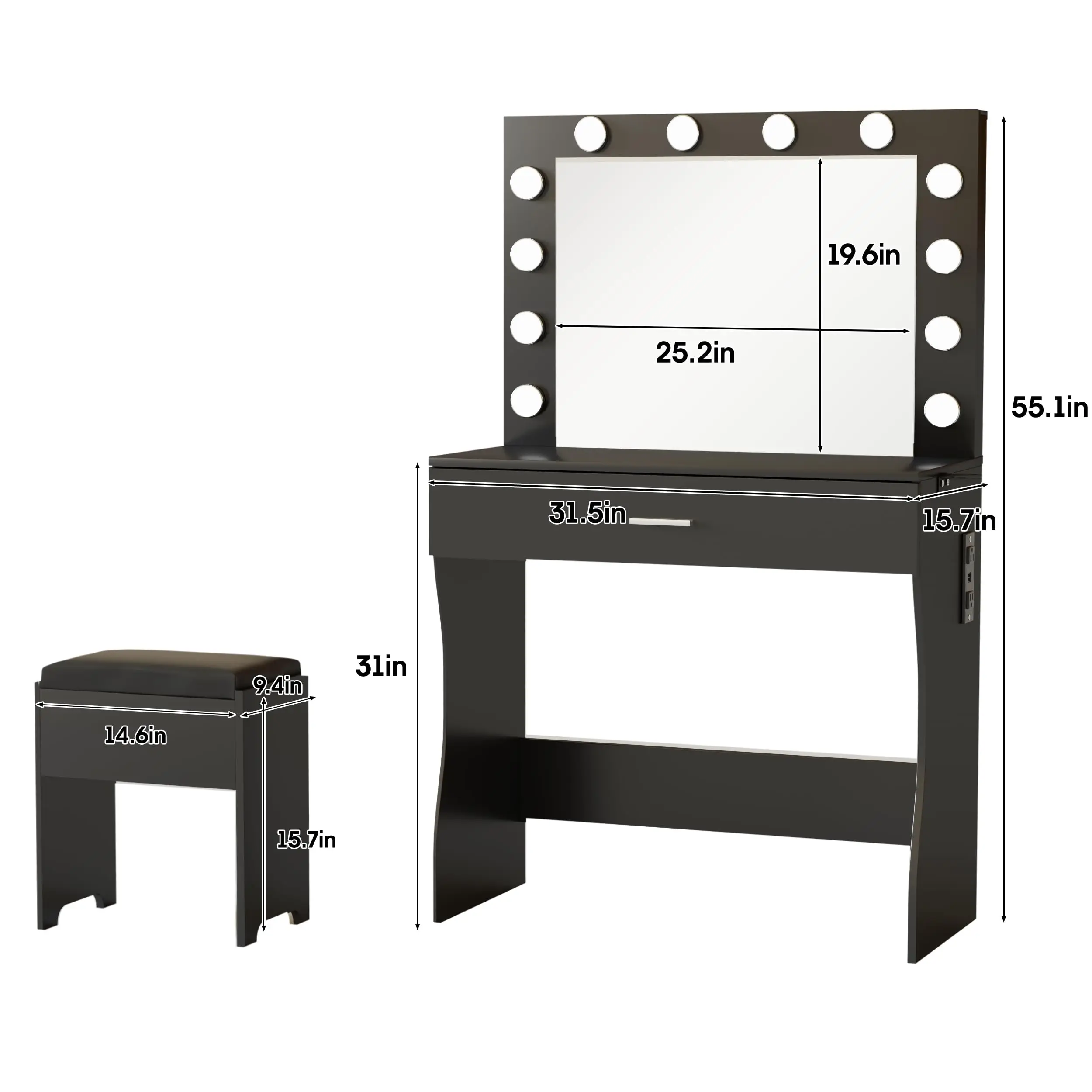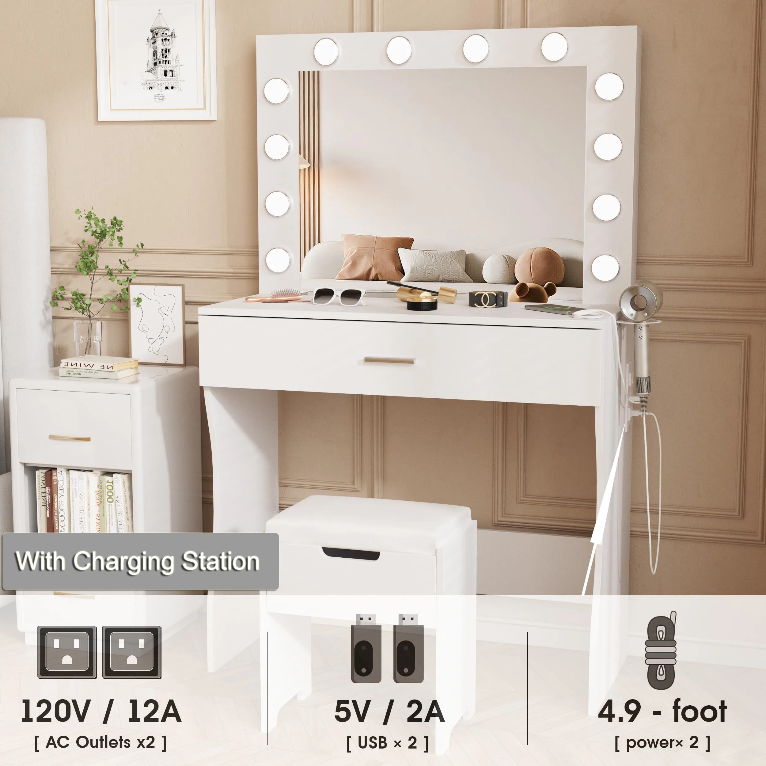 Vanity Makeup Desk with Lights Mirror & Cushioned Stool