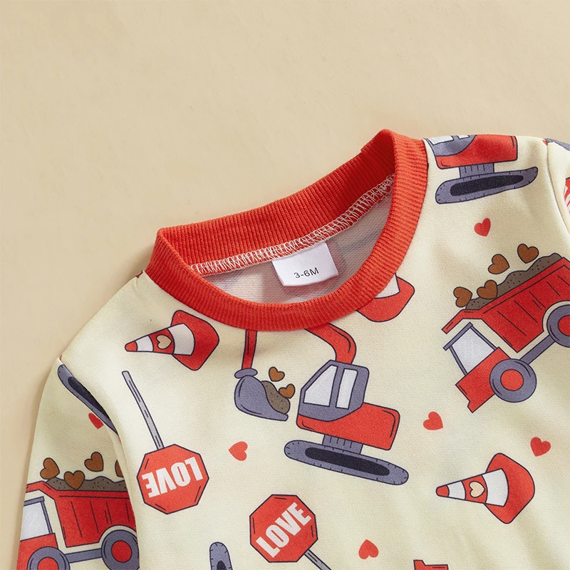 Baby Boy Valentine Outfit Truck Print Long Sleeve Sweatshirt and Elastic Pants 2 Piece Jogger Clothes for ToddlerFeatures