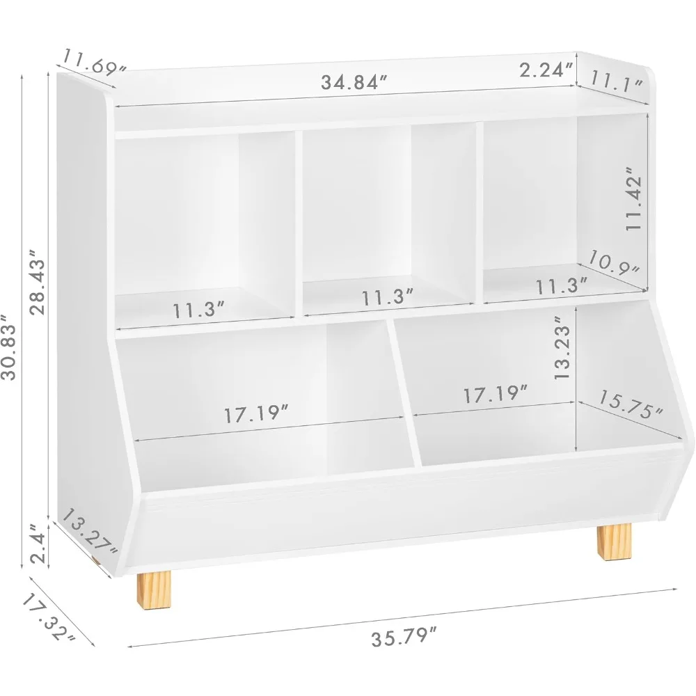 - MULTI-SCENE USE: The dimension of kids' bookshelves organizer is 35"W x 12" D x 35"H.It can display and store books, toys, blocks, draws,dolls,etc. It is ideal for use in bedrooms, children's rooms, playrooms, nursery school,living rooms.