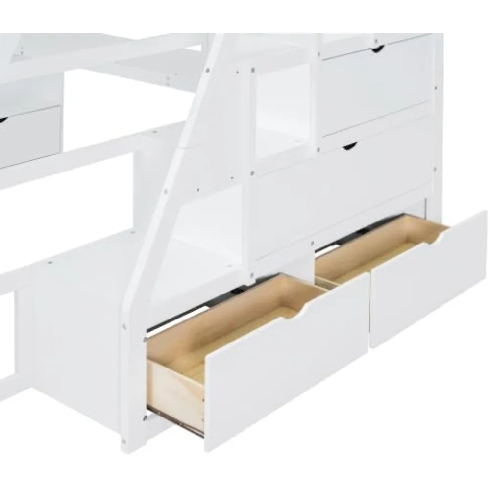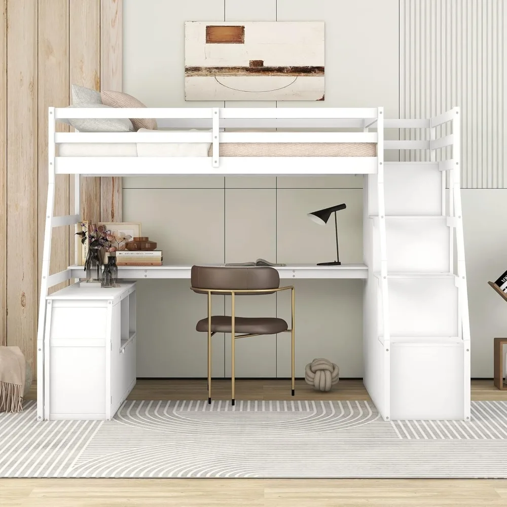 Large Extra Strorage Space: Loft bed with storage steps overall size 94.7"L x 56.8"W x 68.3"H. Loft bed with desk with 7 drawers as ladders and 2 shelves. Mattress not included. Some assembly is required, although we have provided clear instructions and tools.