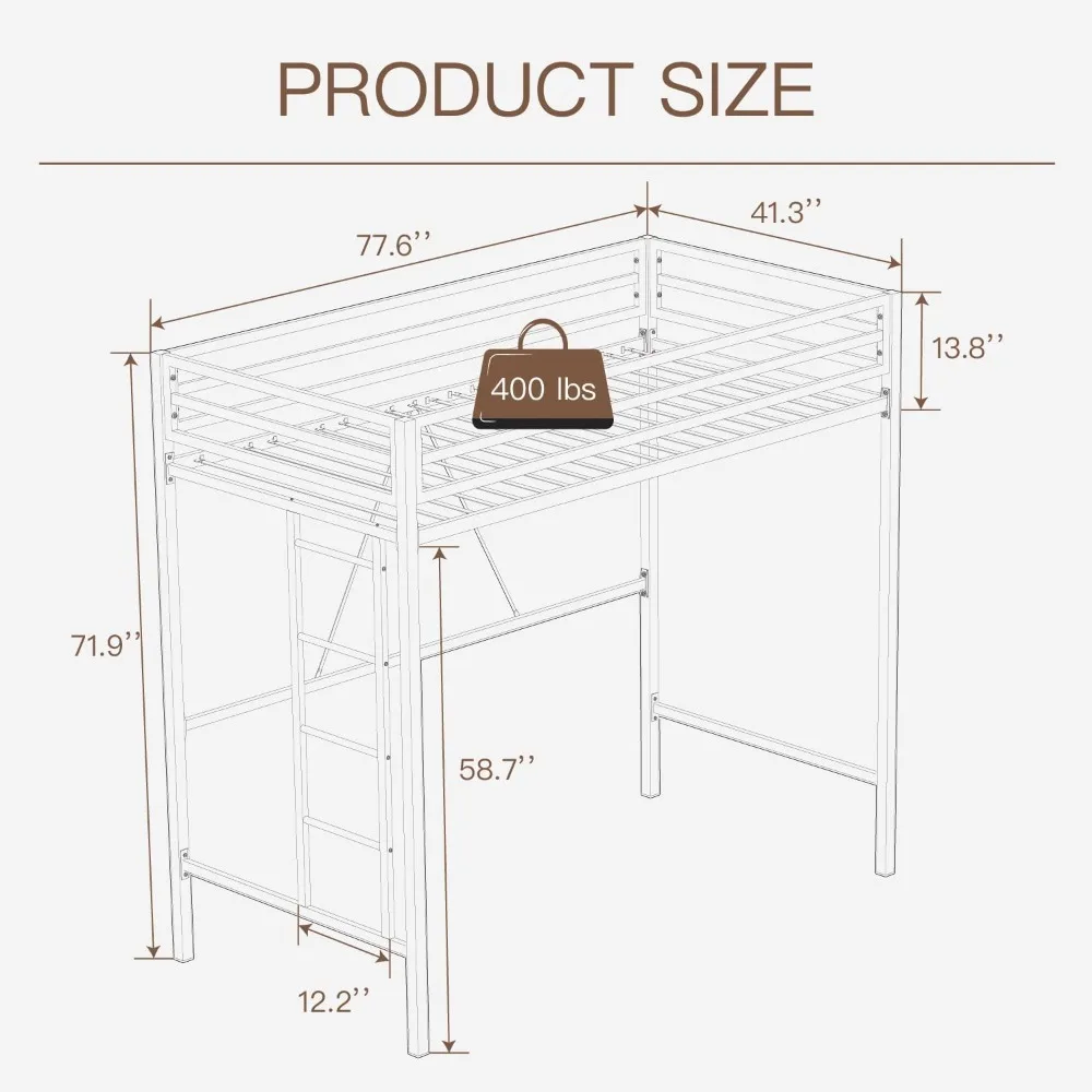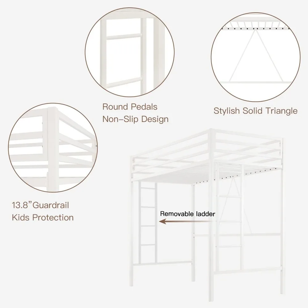 Twin Size Metal Loft Bed with Safety Guardrail And Ladder Space Saving