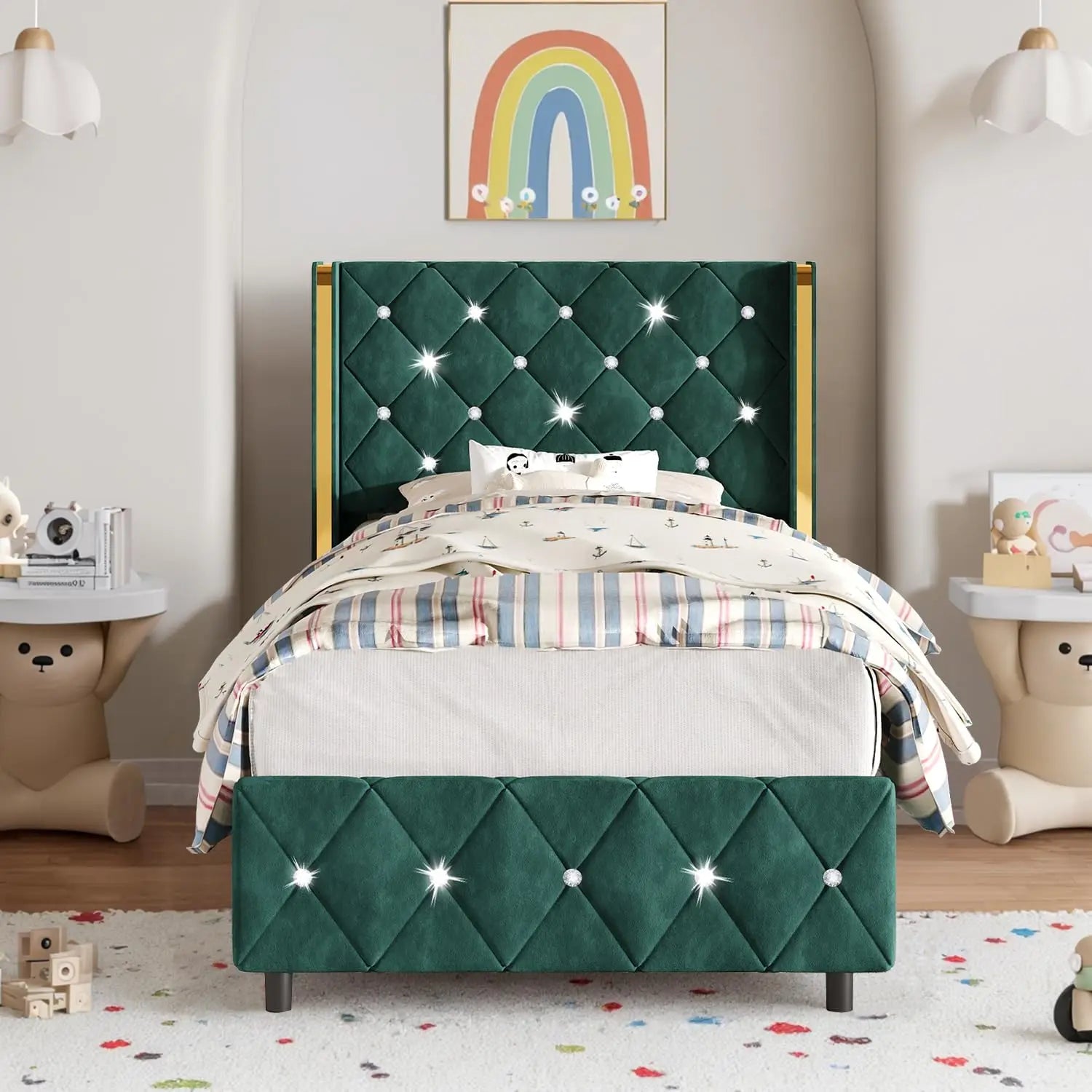 - Cute Shiny Style: Combining a stylish diamond headboard and footboard with the popular wingback design, this twin bed frames for girls mixes easily with any bedroom style or color scheme