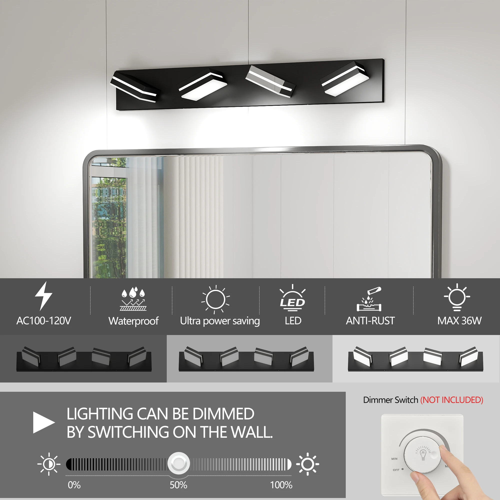 LED Modern Bathroom Vanity Light 3-4 Lights 24-30 Inch Black/Chrome Wall Fixture Over Mirror