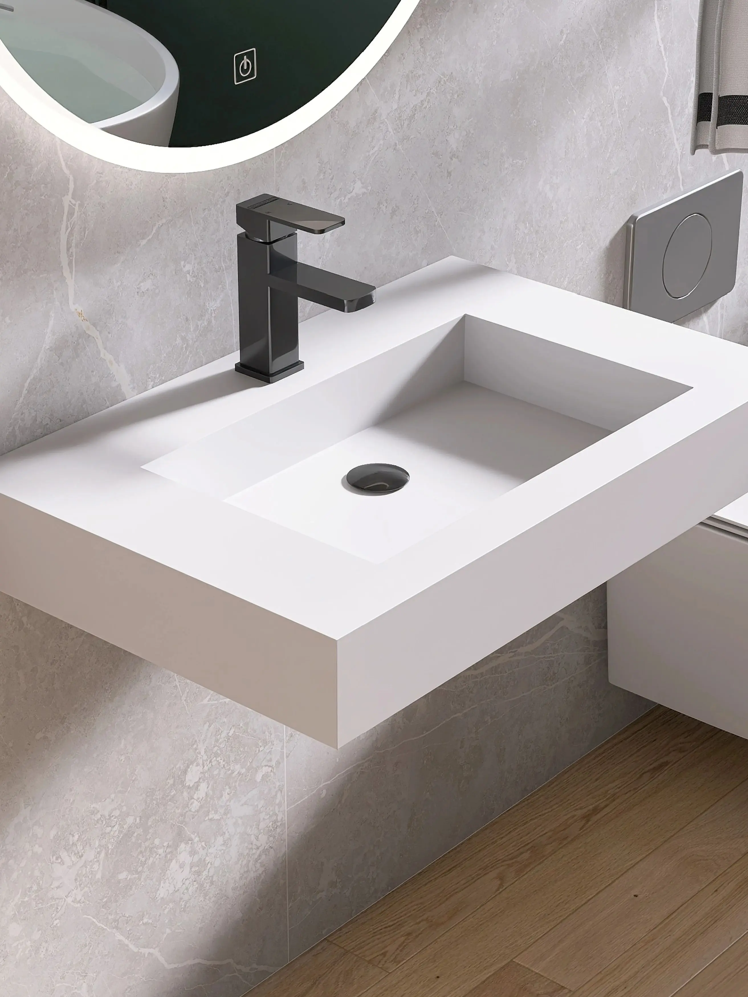 Durable and Long-lasting: Crafted from high-quality stone resin, this sink is built to last. The solid surface construction not only makes it easy to clean but also adds to its longevity, making it a reliable choice for any bathroom
