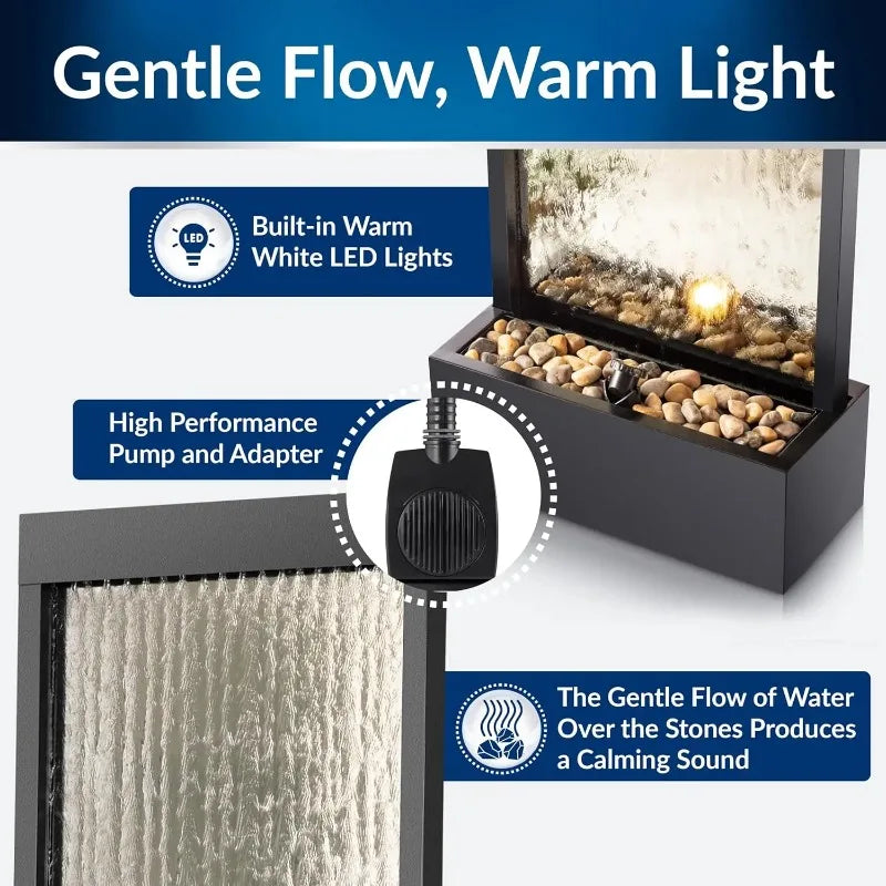 LED Lighting Effect: Equipped with energy efficient LED lights, this fountain illuminates the cascading water, enhancing the soothing water flow and creating a beautiful visual display.